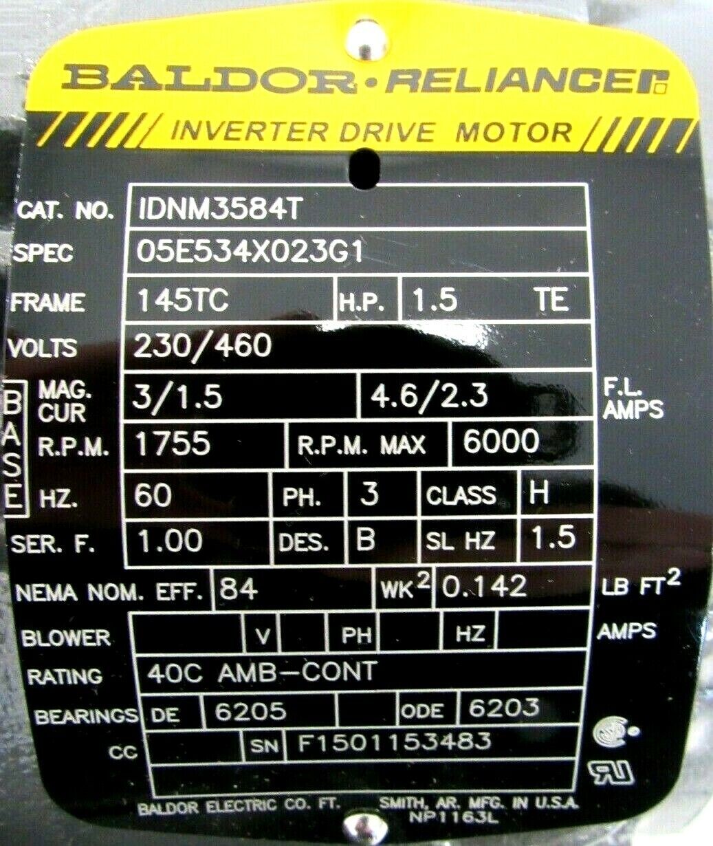 NEW BALDOR IDNM3584T MOTOR 1.5HP 230/460V 1755RPM 7/8″ DIA.