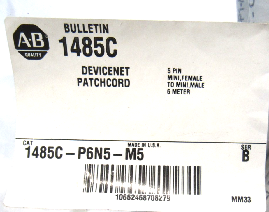 ALLEN BRADLEY 1485C-P6N5-M5 DEVICENET PATCHCORD 1485CP6N5M5 SER.B NEW SURPLUS