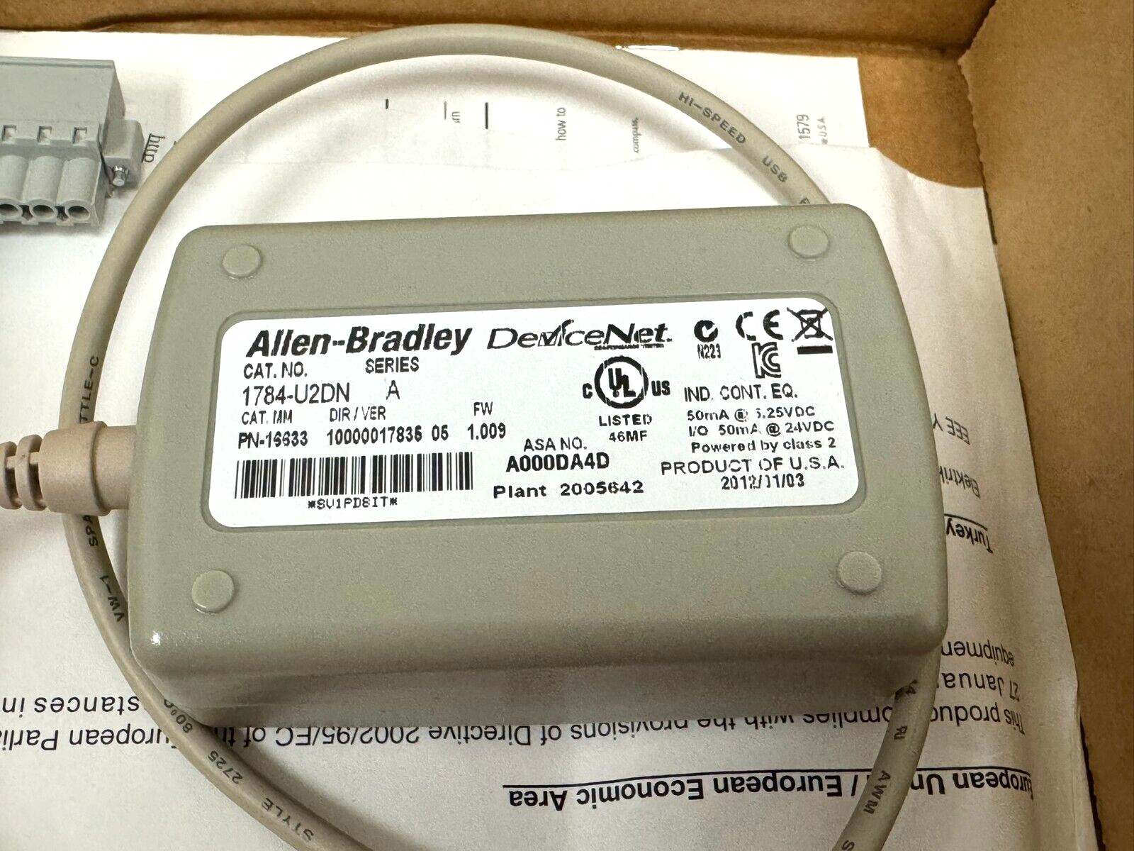 ALLEN BRADLEY 1784-U2DN DEVICENET TO USB INTERFACE SER. A NEW SURPLUS