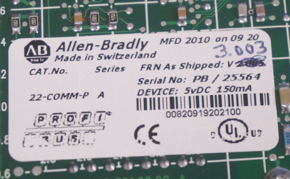 ALLEN BRADLEY 22-COMM-P POWERFLEX PROFIBUS ADAPTER SER. A. FRN. V3.003