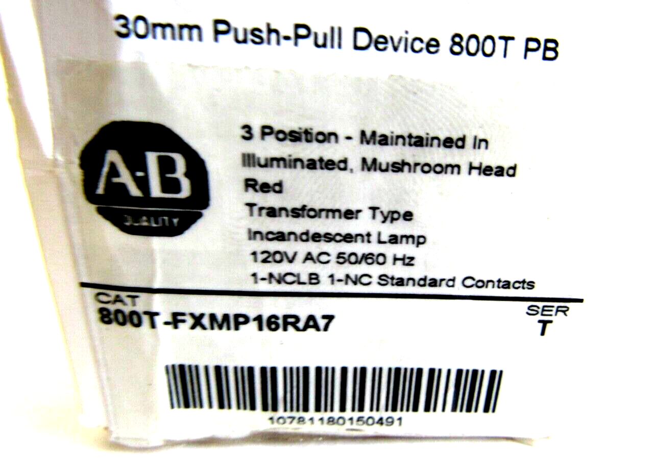 ALLEN BRADLEY 800T-FXMP16RA7 PUSH-PULL DEVICE 800TFXMP16RA7 NEW, SURPLUS