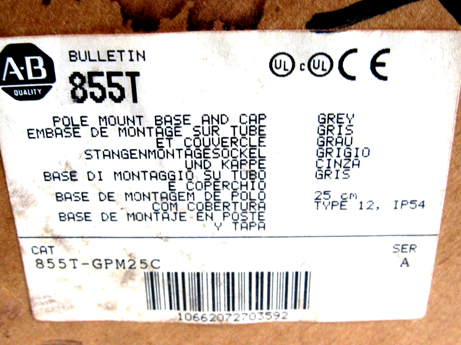 ALLEN BRADLEY 855T-GPM25 POLE MOUNTING BASE /CAP 855TGPM25C SER. A NEW, SURPLUS
