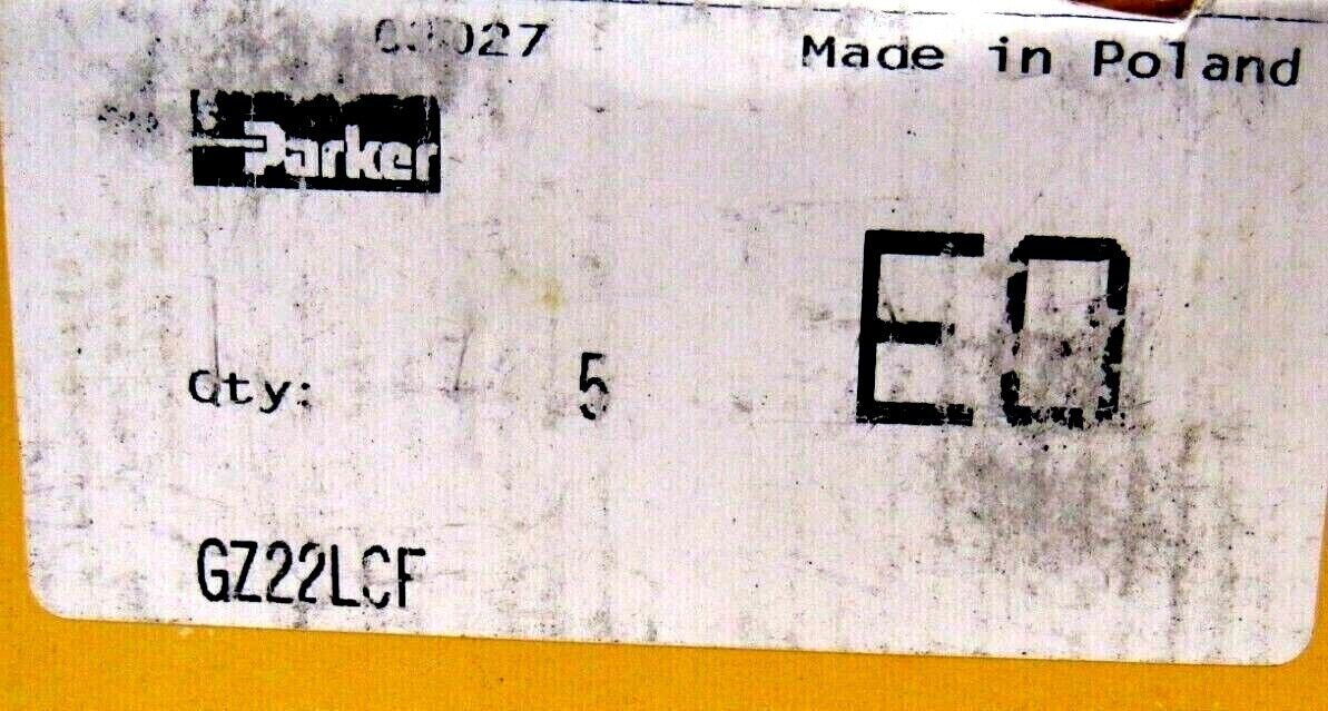 BOX OF 5 NEW PARKER GZ22LCF SWIVEL NUT CONNECTORS$50.00 Out of stock SKU: 175398850646 Category: Other Description Additional information Description BOX OF 5 NEW PARKER GZ22LCF SWIVEL NUT CONNECTORS 1125 RB Additional information Weight 3.00 lbs Country/Region of Manufacture Poland MPN GZ22LCF Brand Parker We Buy New and Used Surplus Inventory - Sell to Us