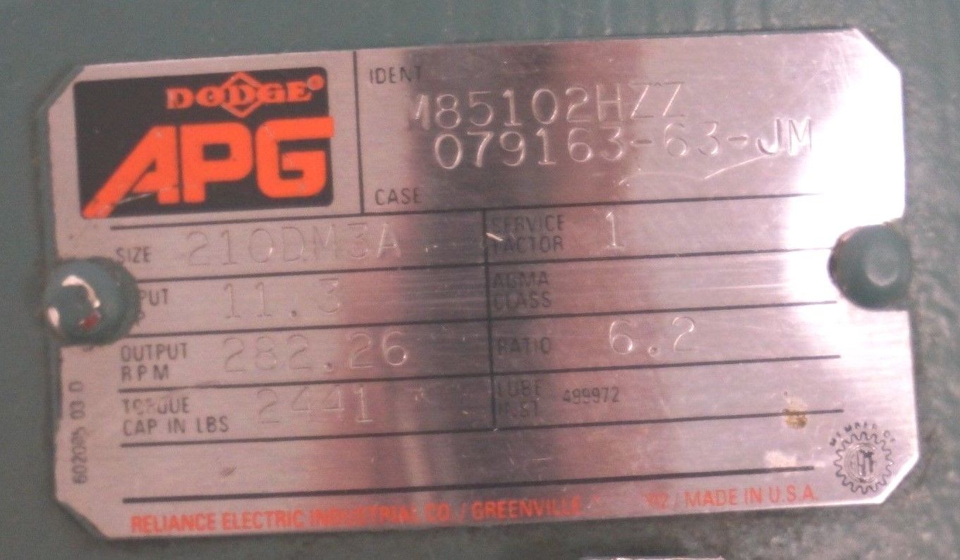 DODGE APG M85102HZZ REDUCER 079163-63-JM, 210DM3A REPAIRED