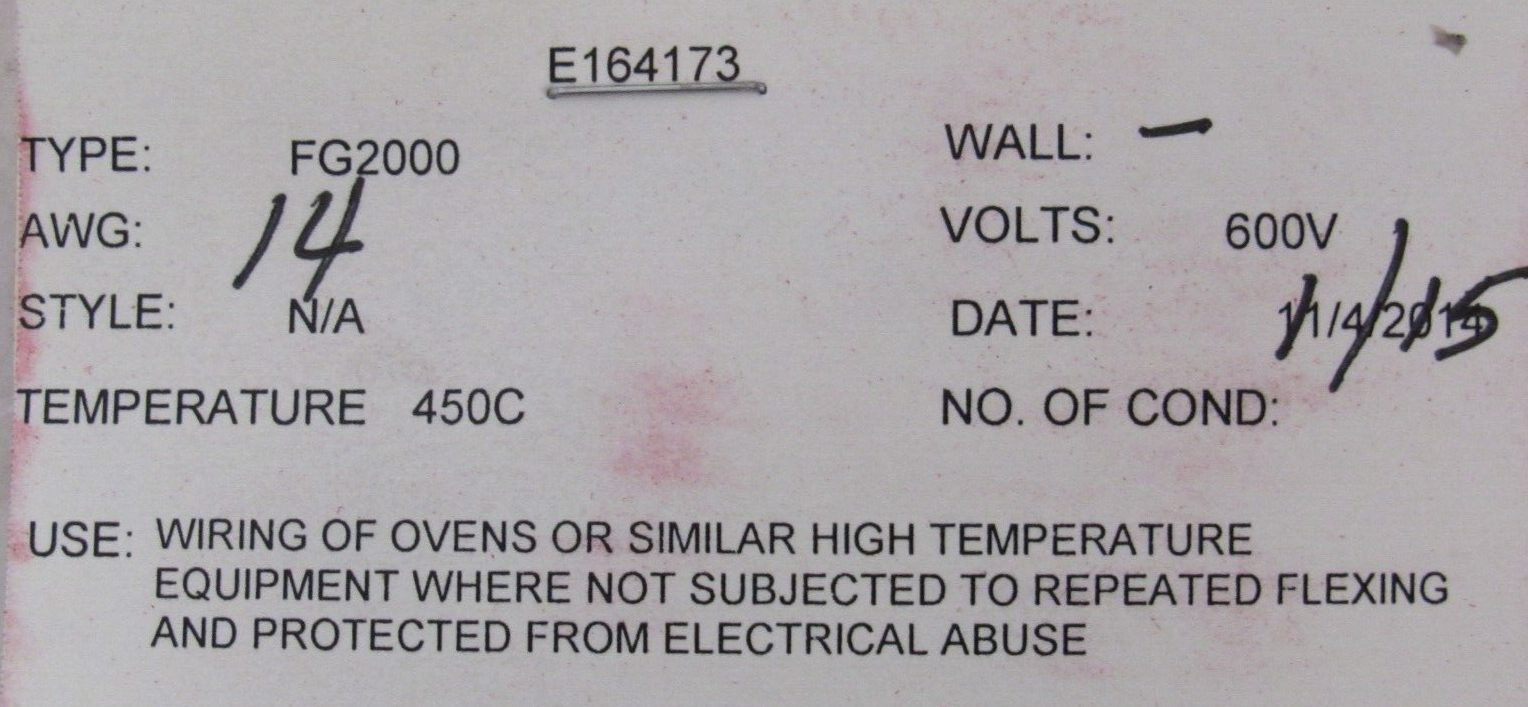 FG2000 14 AWG RED HIGH TEMP WIRE 1/14 “A” NICKEL 450C 1000FT 491401U2 500070378