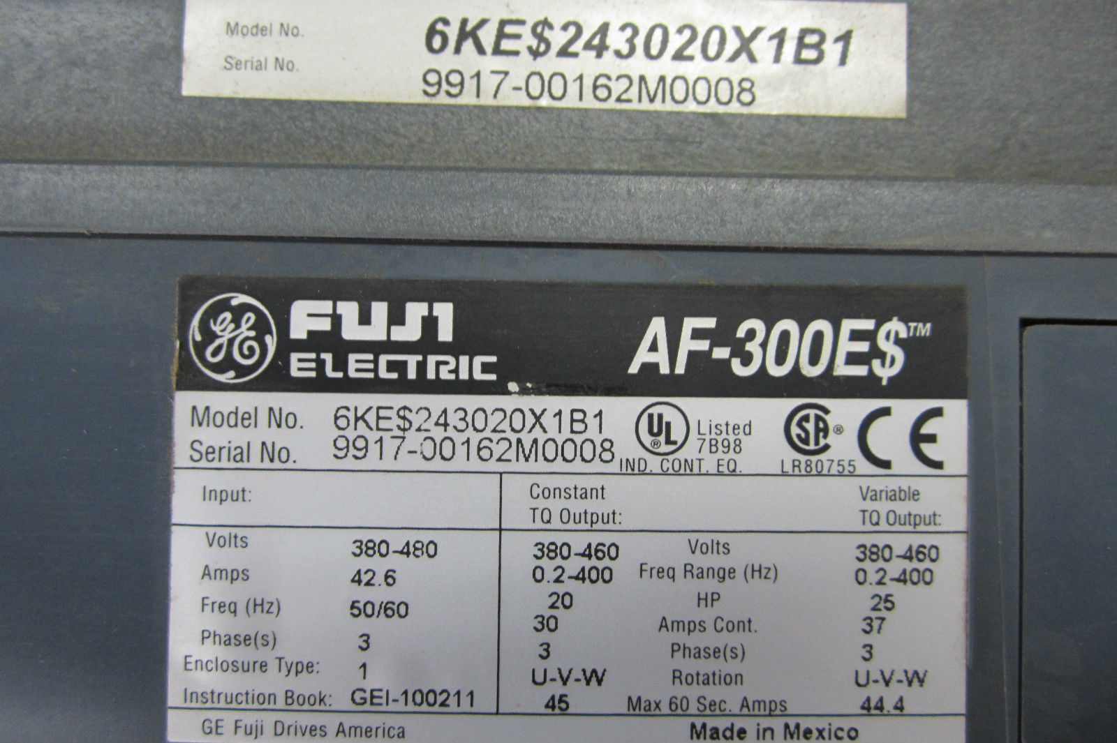 GE FUJI 6KE$243020X1B1 DRIVE AF-300E$ 25HP