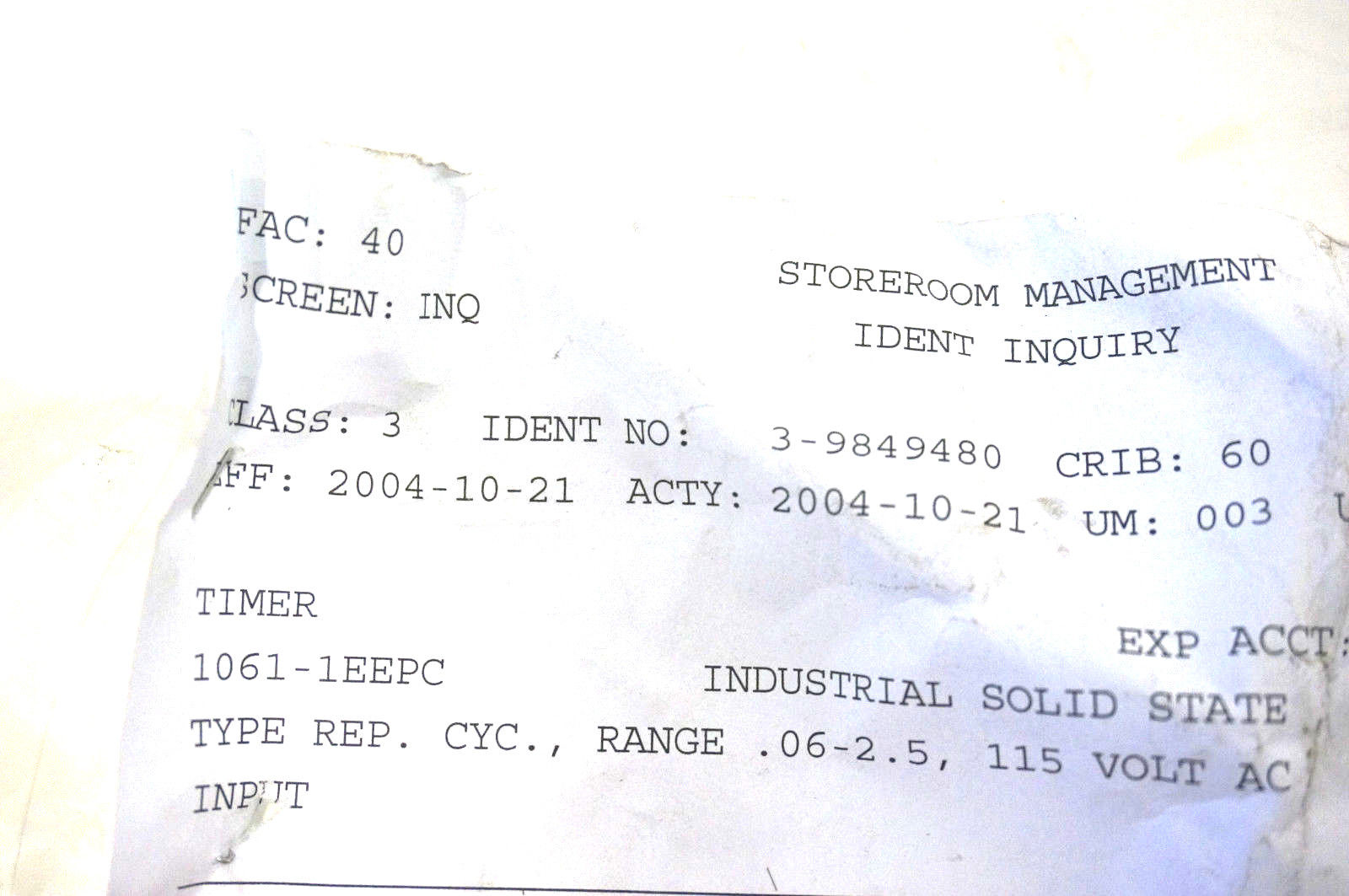 INDUSTRIAL SOLID STATE CONTROLS 1061-1EEPC RELAY 10611EEPC