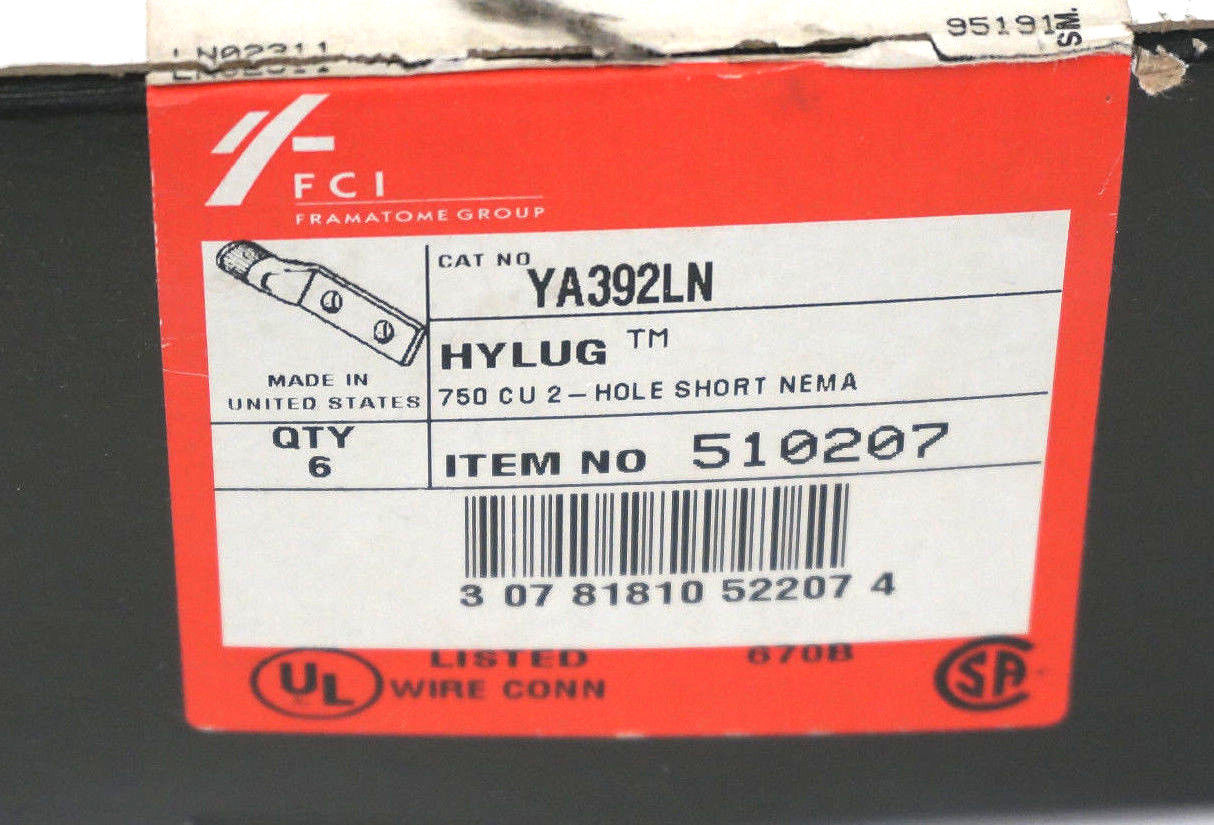 LOT OF 6 NEW BURNDY YA392LN COMPRESSION LUGS