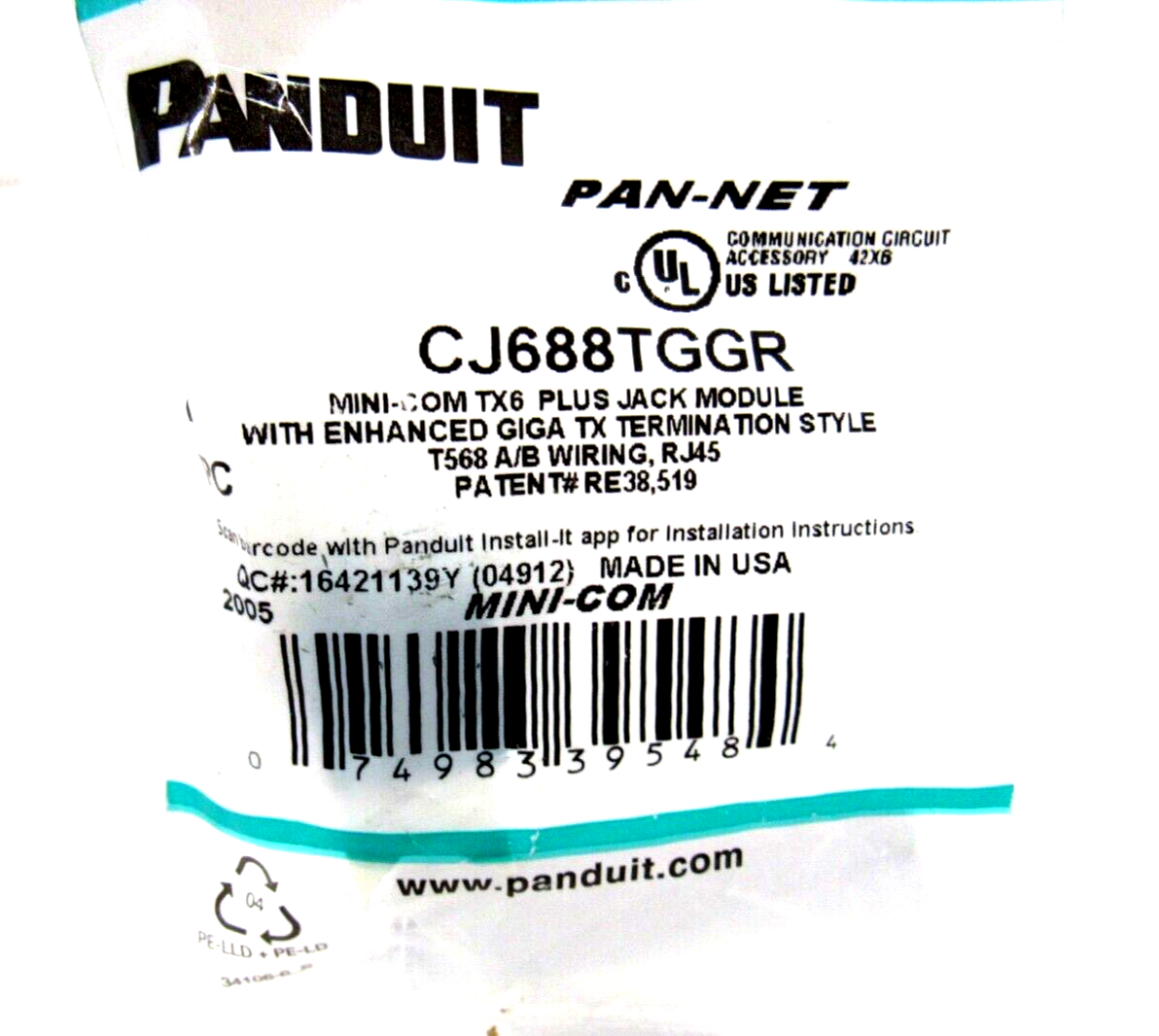 LOT OF 72 NEW PANDUIT CJ688TGGR MINI-COM MODULES