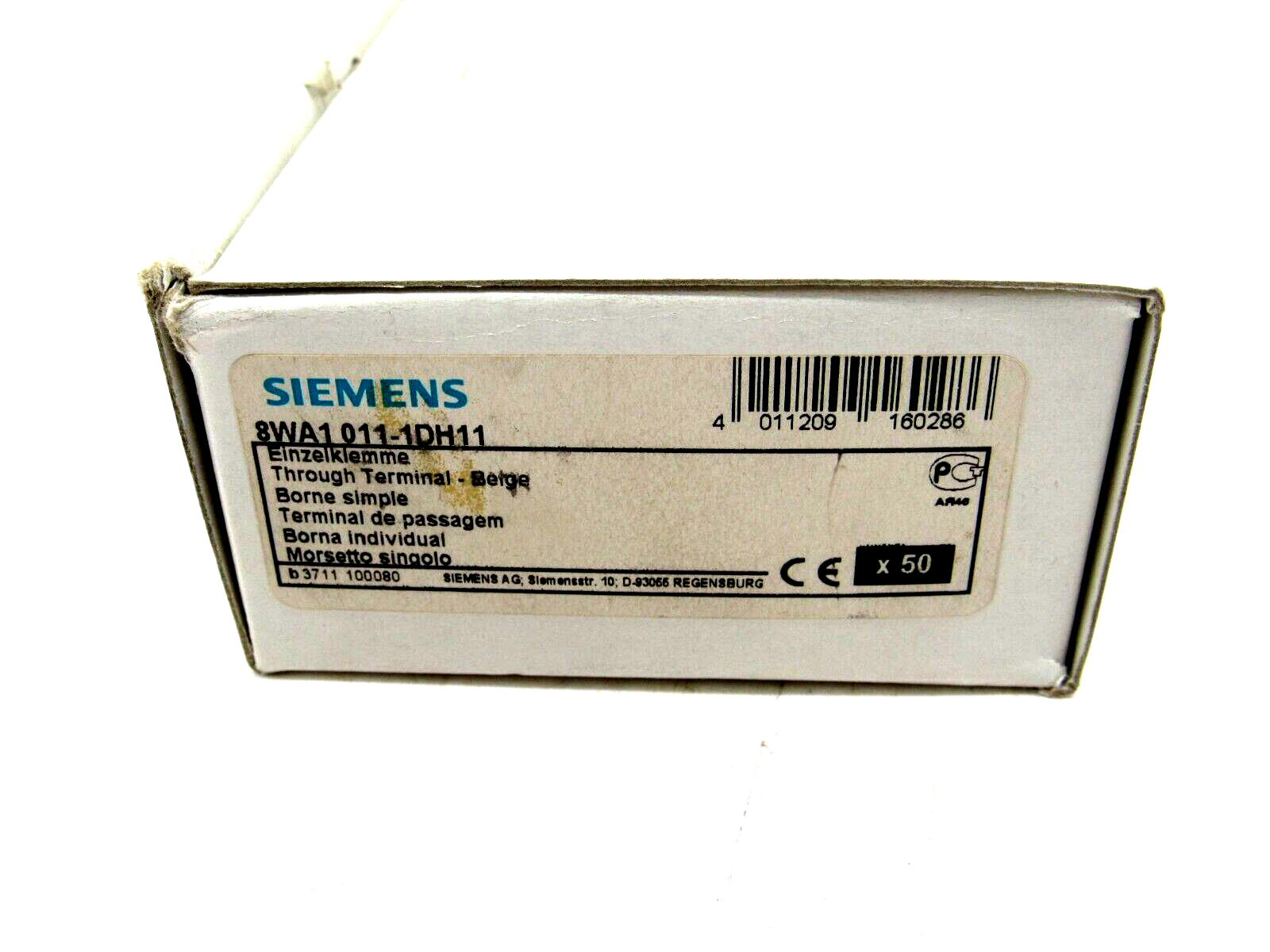 NEW 50 PCS SIEMENS 8WA1011-1DH11 TERMINAL BLOCK 8WA10111DH11$75.00 Out of stock SKU: 354621974506 Category: Other Description Additional information Description NEW 50 PCS SIEMENS 8WA1011-1DH11 TERMINAL BLOCK 8WA10111DH11596/BF Additional information Weight 2.00 lbs Brand SIEMENS Type Terminal We Buy New and Used Surplus Inventory - Sell to Us
