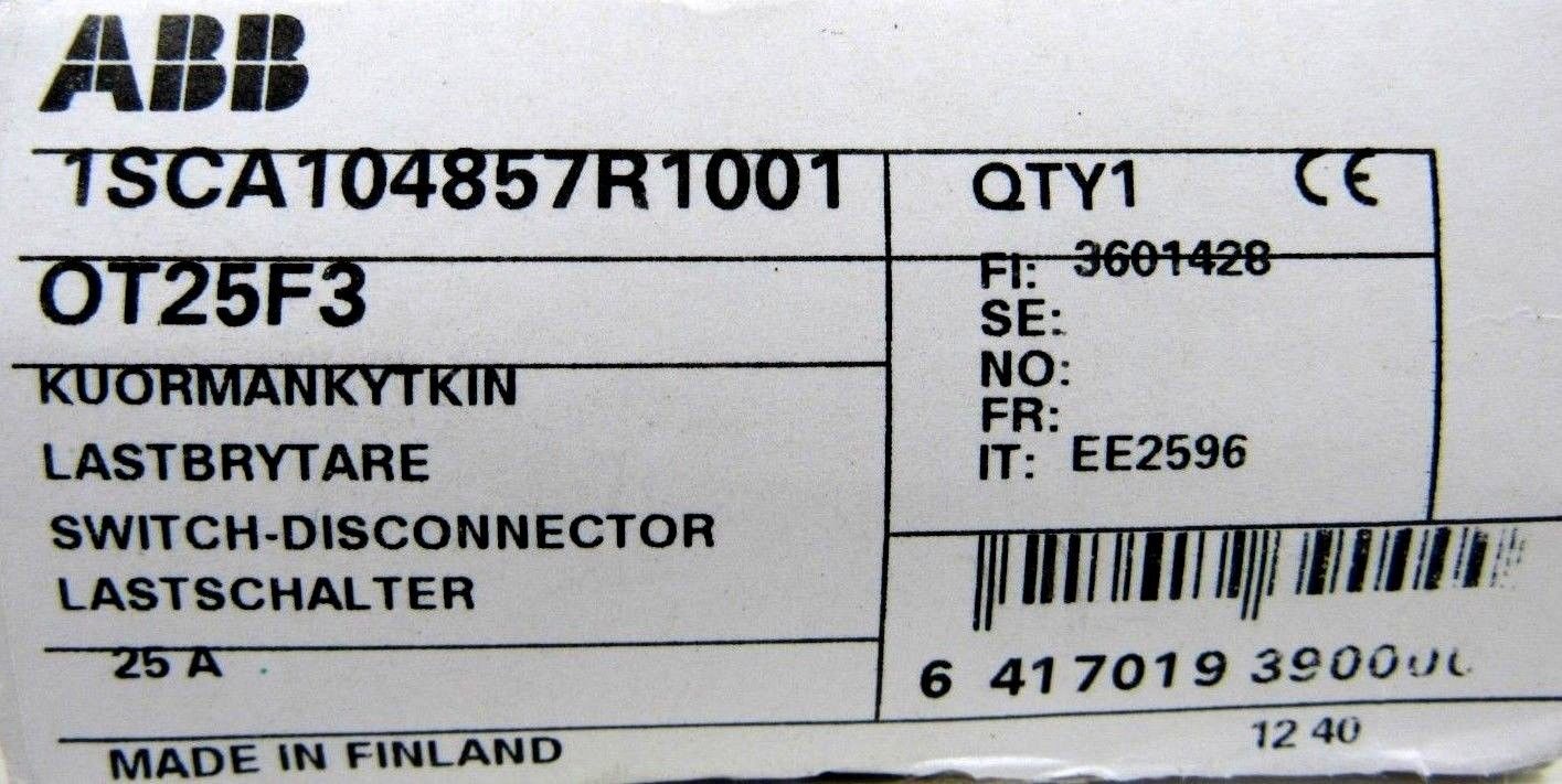NEW ABB 1SCA104857R1001 DISCONNECT SWITCH WITH 1SCA105215R1001 HANDLE