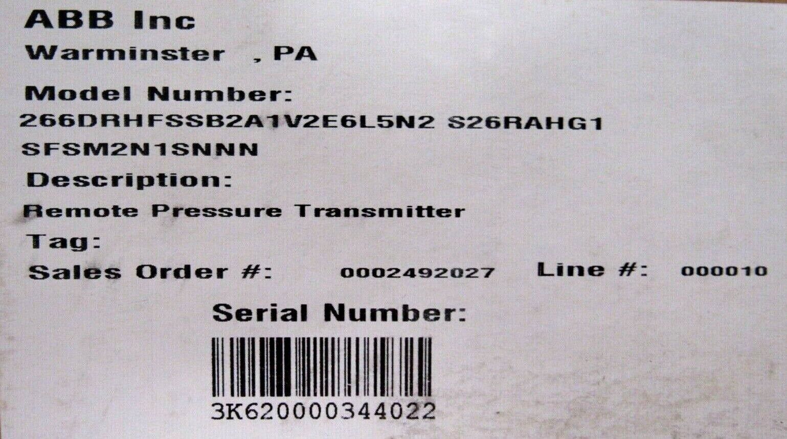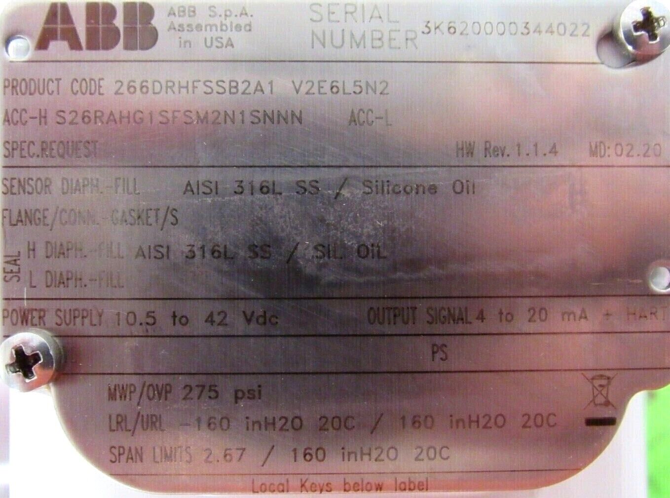 NEW ABB 266DRHFSSB2A1V2E6L5N2 PRESSURE TRANSMITTER