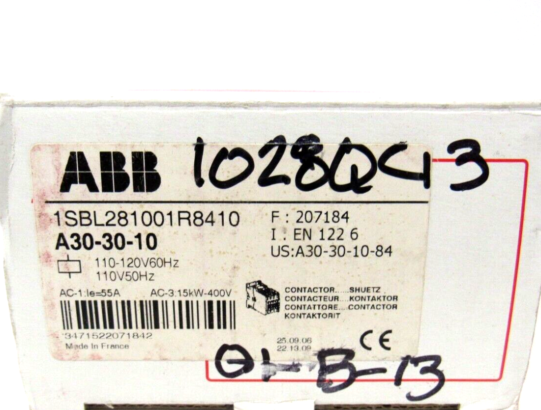 NEW ABB A30-30-10 CONTACTOR A303010$100.00 Out of stock SKU: 354493652353 Category: Other Description Additional information Description NEW ABB A30-30-10 CONTACTOR A303010 1241 RB Additional information Weight 1.56 lbs Brand ABB MPN A30-30-10 Country/Region of Manufacture France We Buy New and Used Surplus Inventory - Sell to Us