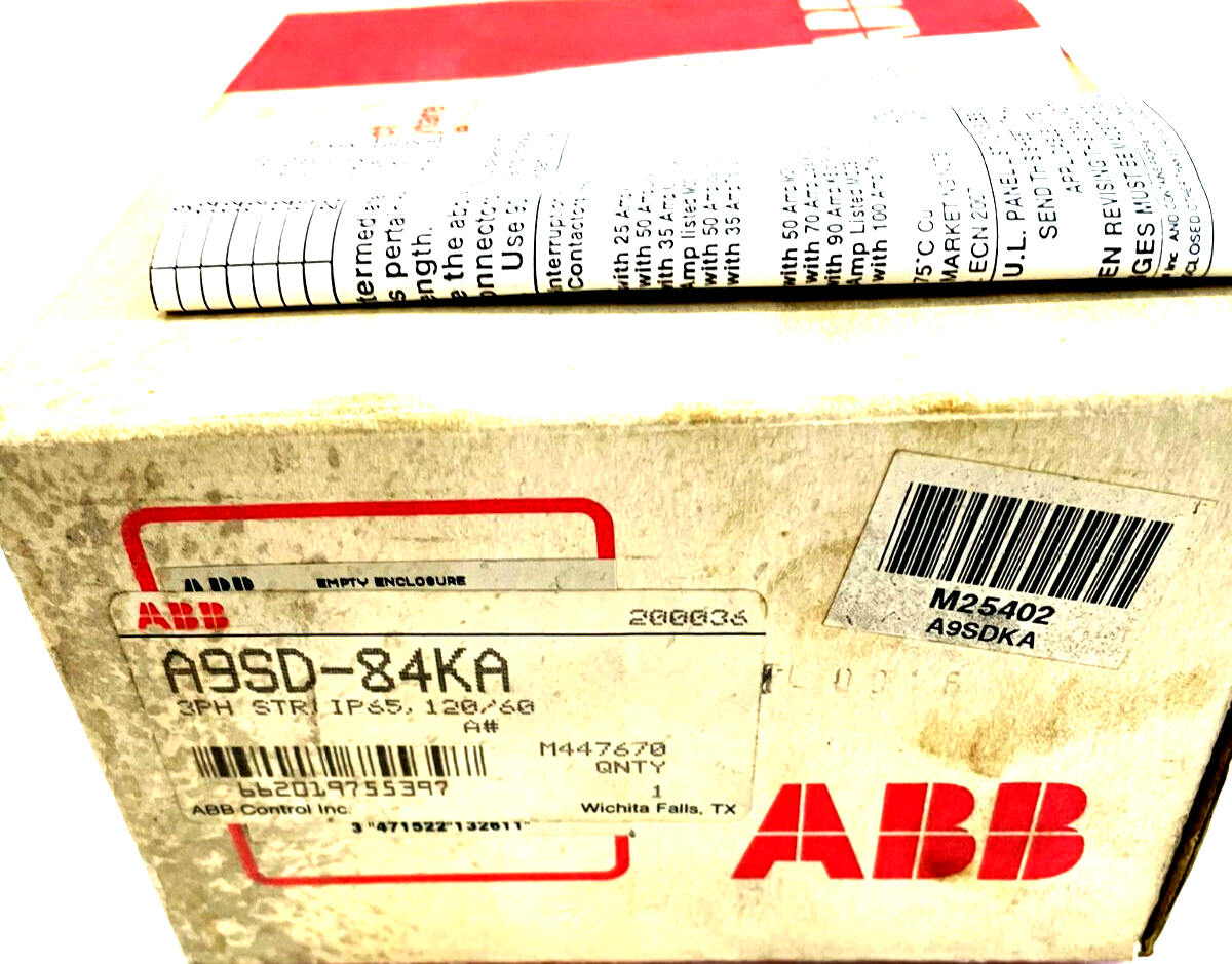 NEW ABB A9SD-84KA MANUAL STARTER 3PH IP65, 120/60AMP A9SD84KA