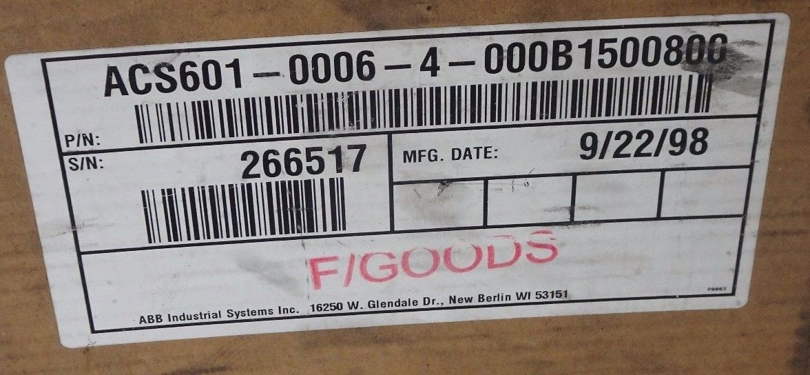 NEW ABB ACS601-0006-4-000B1500800 ACS 600 AC DRIVE ACS60100064000B1500800
