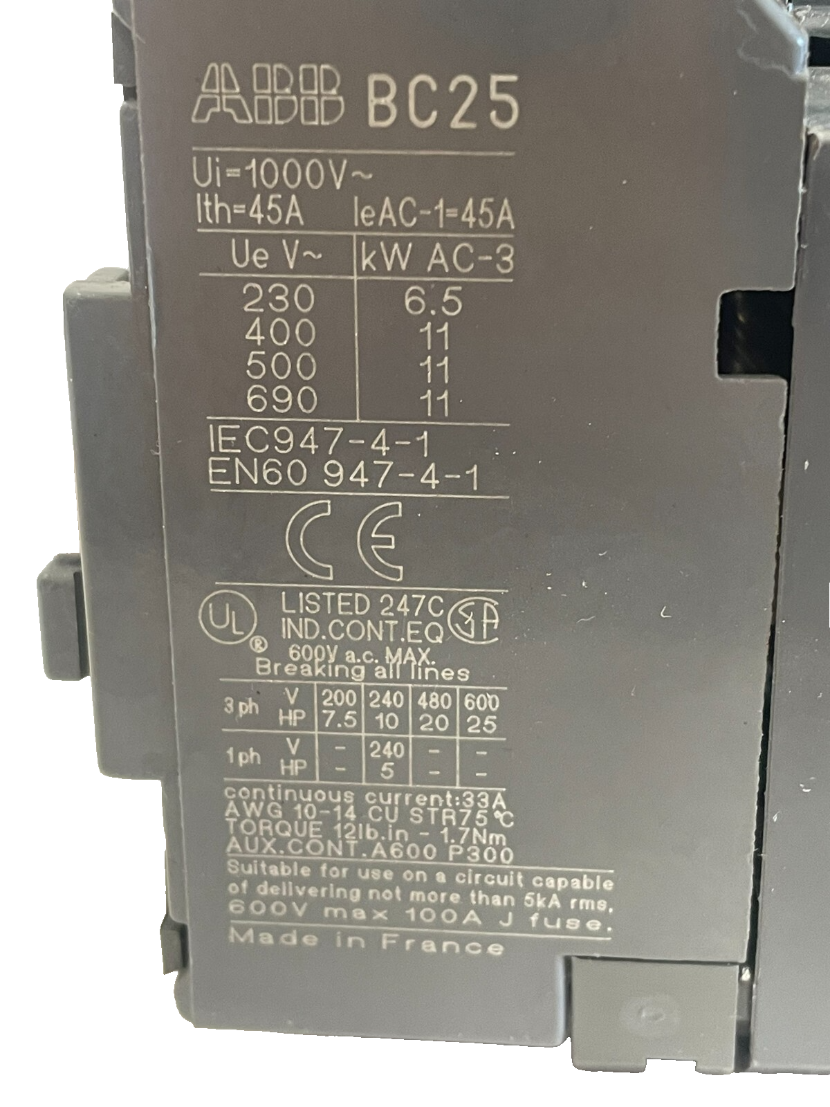 NEW ABB BC25-30-10-01 CONTACTOR BC25301001