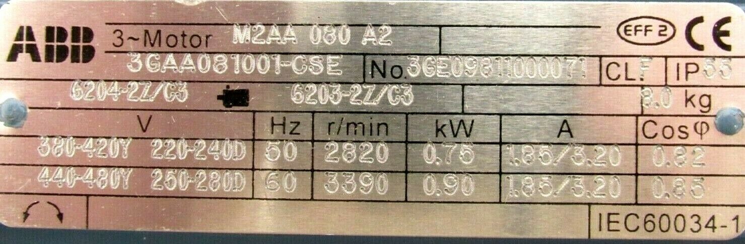 NEW ABB M2AA-080-A2 MOTOR 3GAA081001-CSE M2AA080A2 3/4″ DIA. SHAFTNEW, NO BOX