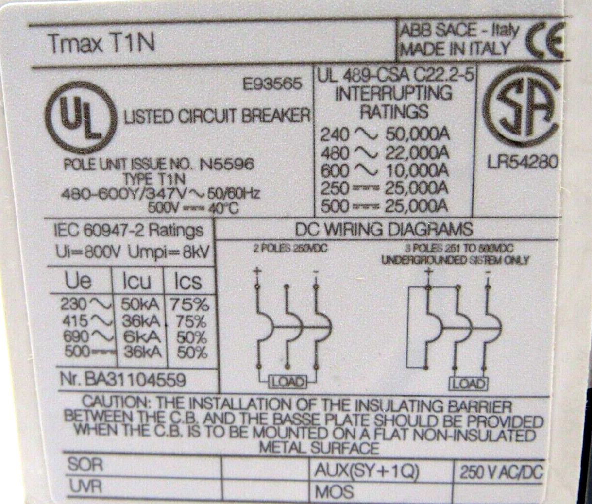 NEW ABB TMAX T1N CIRCUIT BREAKER WITH INSTALLATION KIT E93565$200.00 Out of stock SKU: 355122510929 Category: Other Description Additional information Description NEW ABB TMAX T1N CIRCUIT BREAKER WITH INSTALLATION KIT E93565NEW, NO BOX 1871/BF Additional information Weight 2.37 lbs Brand ABB MPN TMAX T1N Country/Region of Manufacture Italy We Buy New and Used Surplus Inventory - Sell to Us