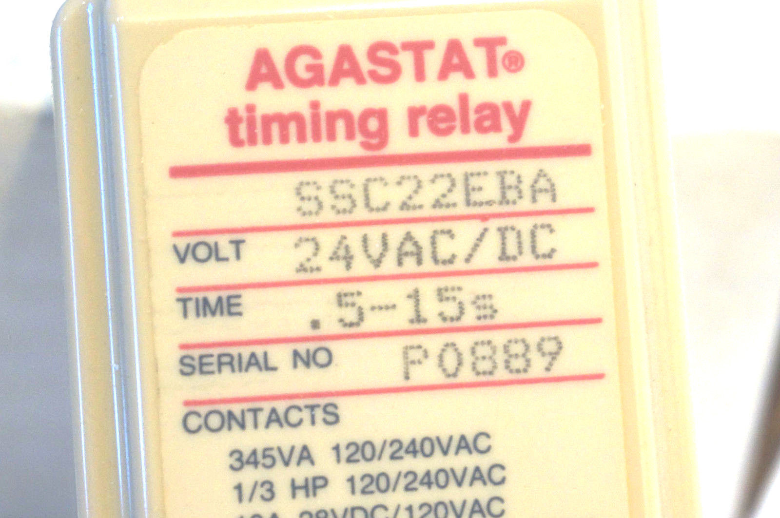 NEW AGASTAT SSC22EBA TIME DELAY RELAY$250.00 Only 2 left in stock NEW AGASTAT SSC22EBA TIME DELAY RELAY quantity Add to cart SKU: 351336431848 Category: Relays Description Additional information Description NEW AGASTAT SSC22EBA TIME DELAY RELAY 850 RB Call us anytime at 855-705-0565 Additional information Weight 1 lbs We Buy New and Used Surplus Inventory - Sell to Us