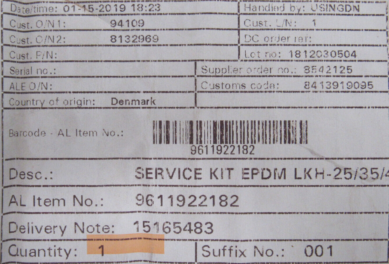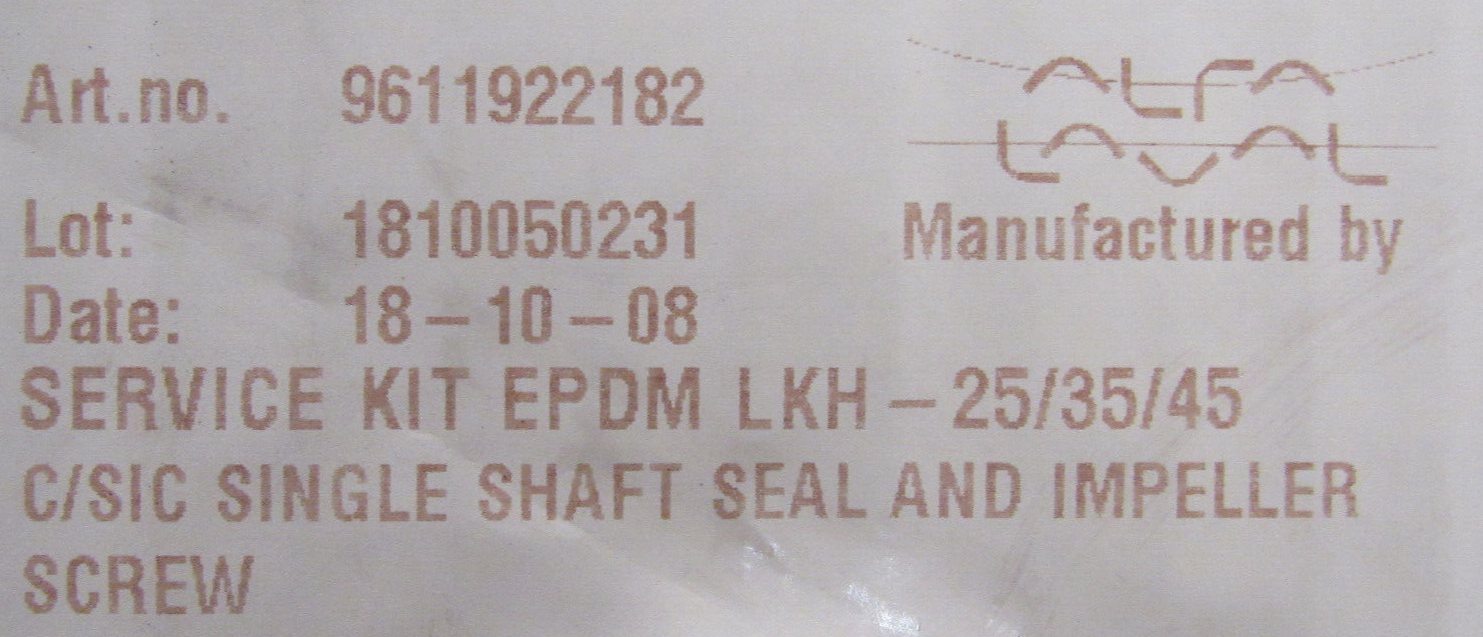 NEW ALFA LAVAL 9611922182 SEAL KIT LKH-25/35/45$250.00 Out of stock SKU: 176015182116 Category: Other Description Additional information Description NEW ALFA LAVAL 9611922182 SEAL KIT LKH-25/35/45 3367 BB Additional information Weight 1.00 lbs Brand ALFA LAVAL MPN 9611922182 We Buy New and Used Surplus Inventory - Sell to Us