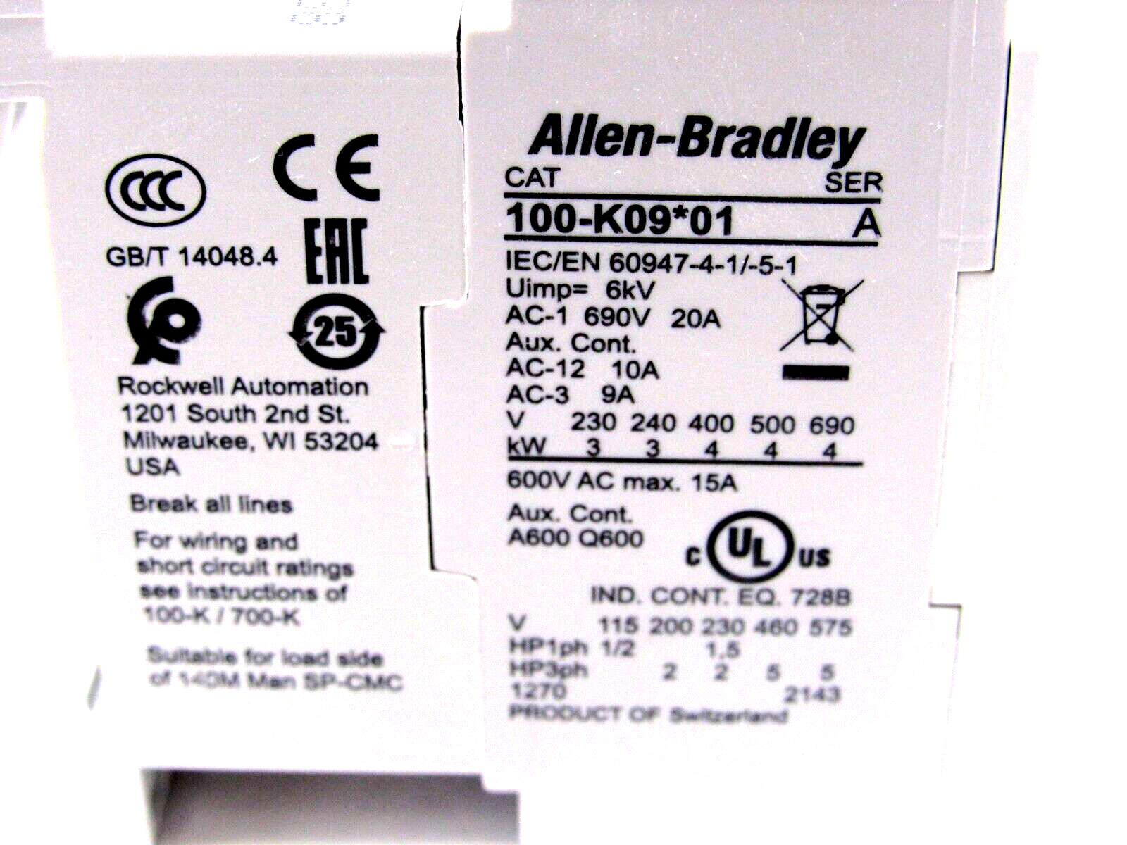 NEW ALLEN BRADLEY 100-K09KJ01 CONTACTOR SERIES A 100K09KJ01