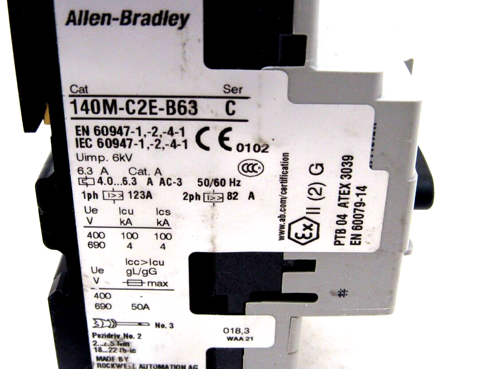 NEW ALLEN BRADLEY 140M-C2E-B63 CIRCUIT BREAKER SERIES C 140MC2EB63