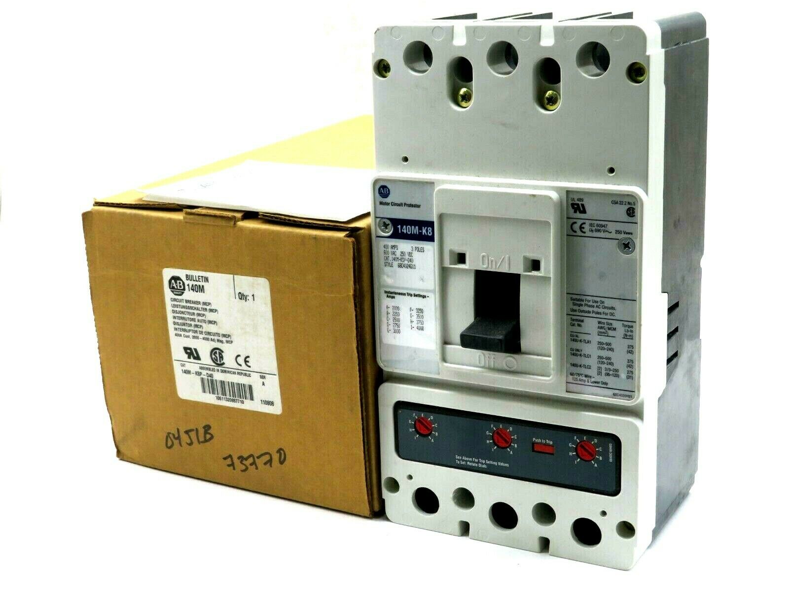 NEW ALLEN BRADLEY 140M-K8P-D40 CIRCUIT BREAKER 140M 400 AMP SERIES A 140MK8PD40