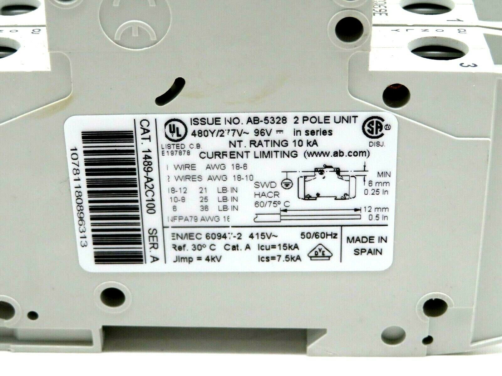 NEW ALLEN BRADLEY 1489-A2C100 CIRCUIT BREAKER SERIES A 1489A2C100