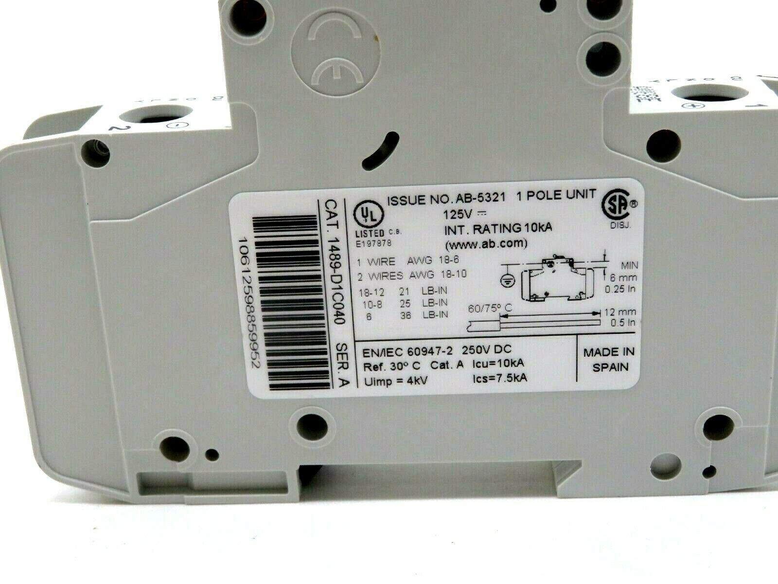 NEW ALLEN BRADLEY 1489-D1C040 CIRCUIT BREAKER SERIES A 1489D1C040