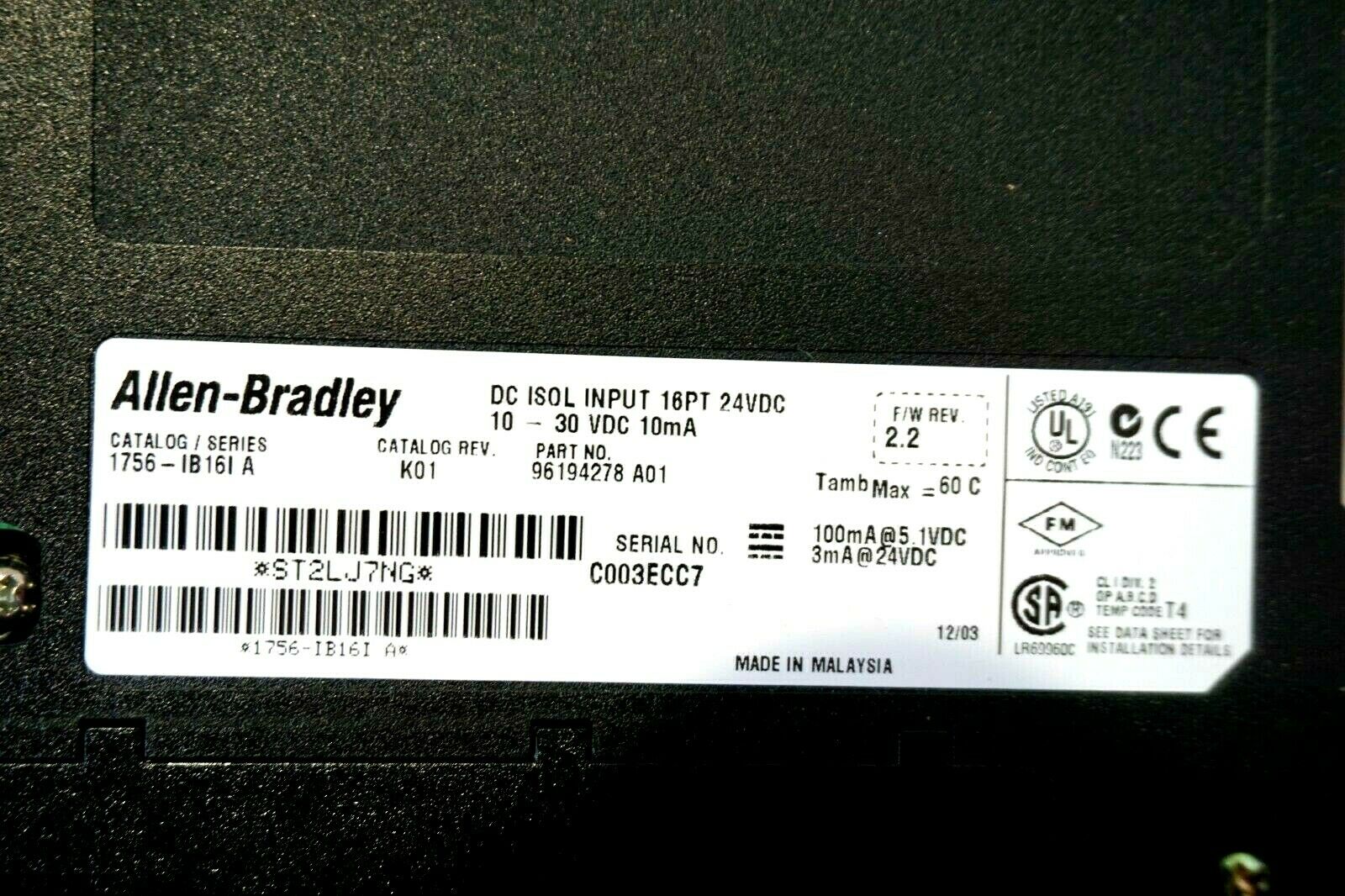 NEW ALLEN BRADLEY 1756-IB16I INPUT MODULE SER.A 1756IB16I