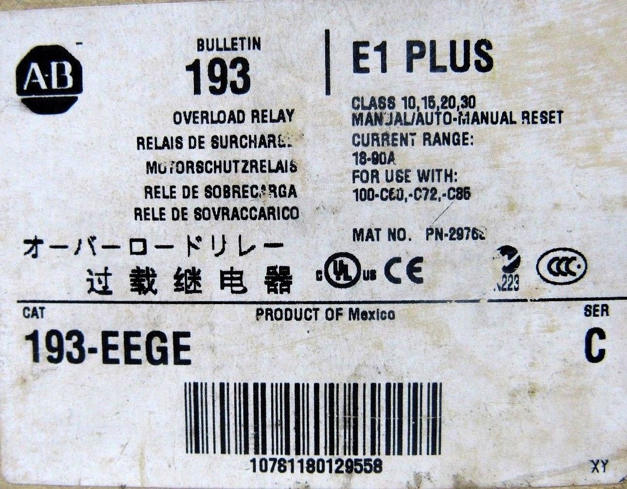 NEW ALLEN BRADLEY 193-EEGE OVERLOAD RELAY 193EEGE SERIES C