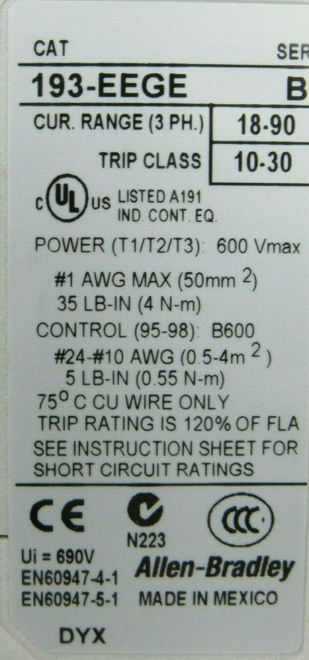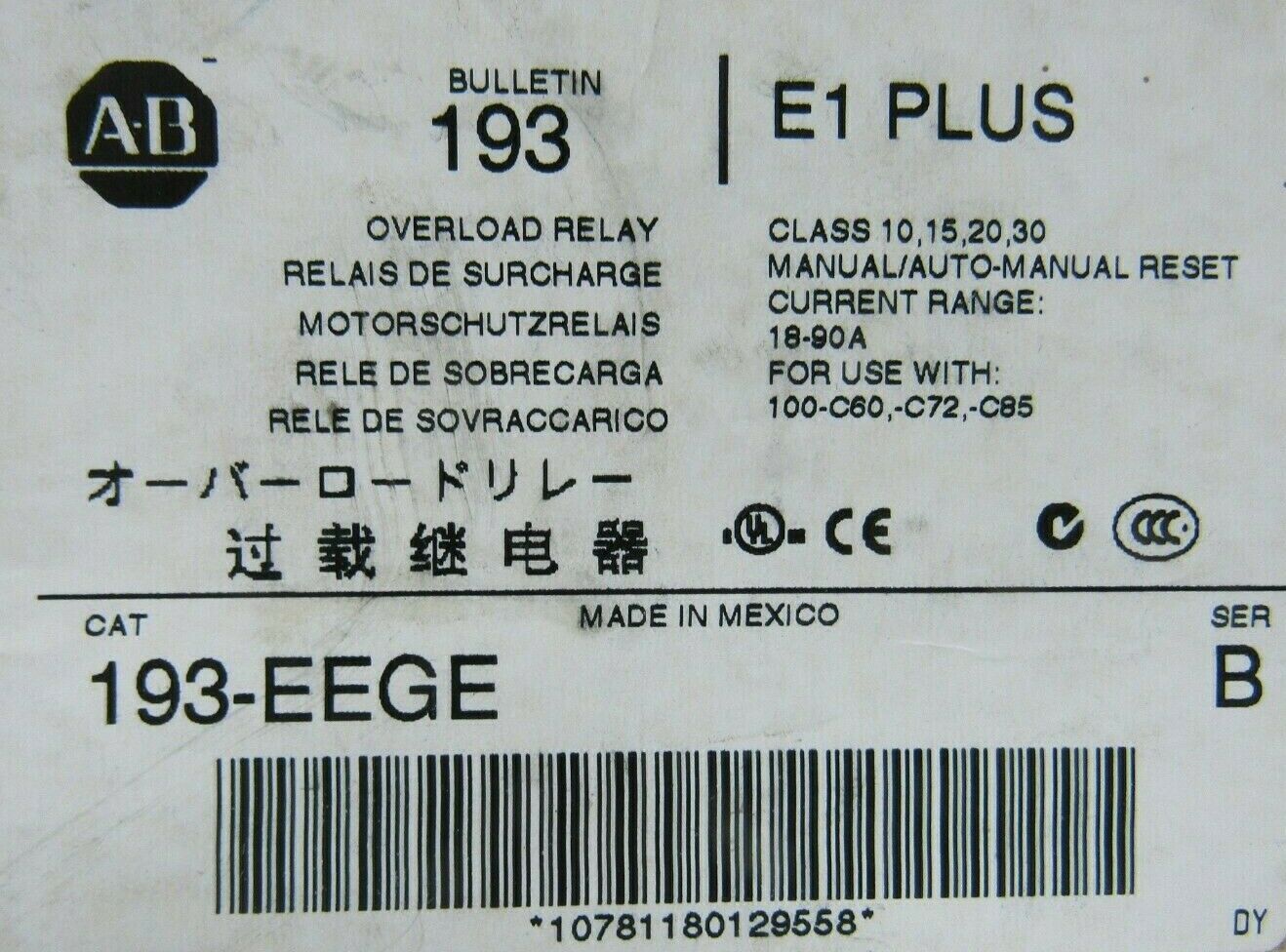 NEW ALLEN BRADLEY 193-EEGE OVERLOAD RELAY SER B 193EEGE