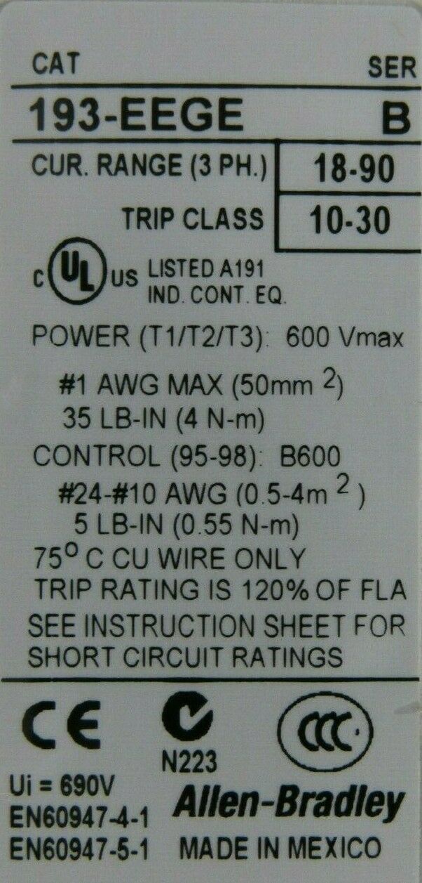NEW ALLEN BRADLEY 193-EEGE OVERLOAD RELAY SERIES B 193EEGENEW, NO BOX
