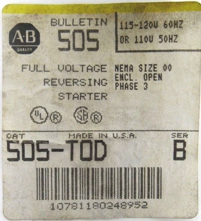 NEW ALLEN BRADLEY 505-TOD REVERSING STARTER SERIES B SIZE 00 505TOD 505-T0DNEW, NO BOX