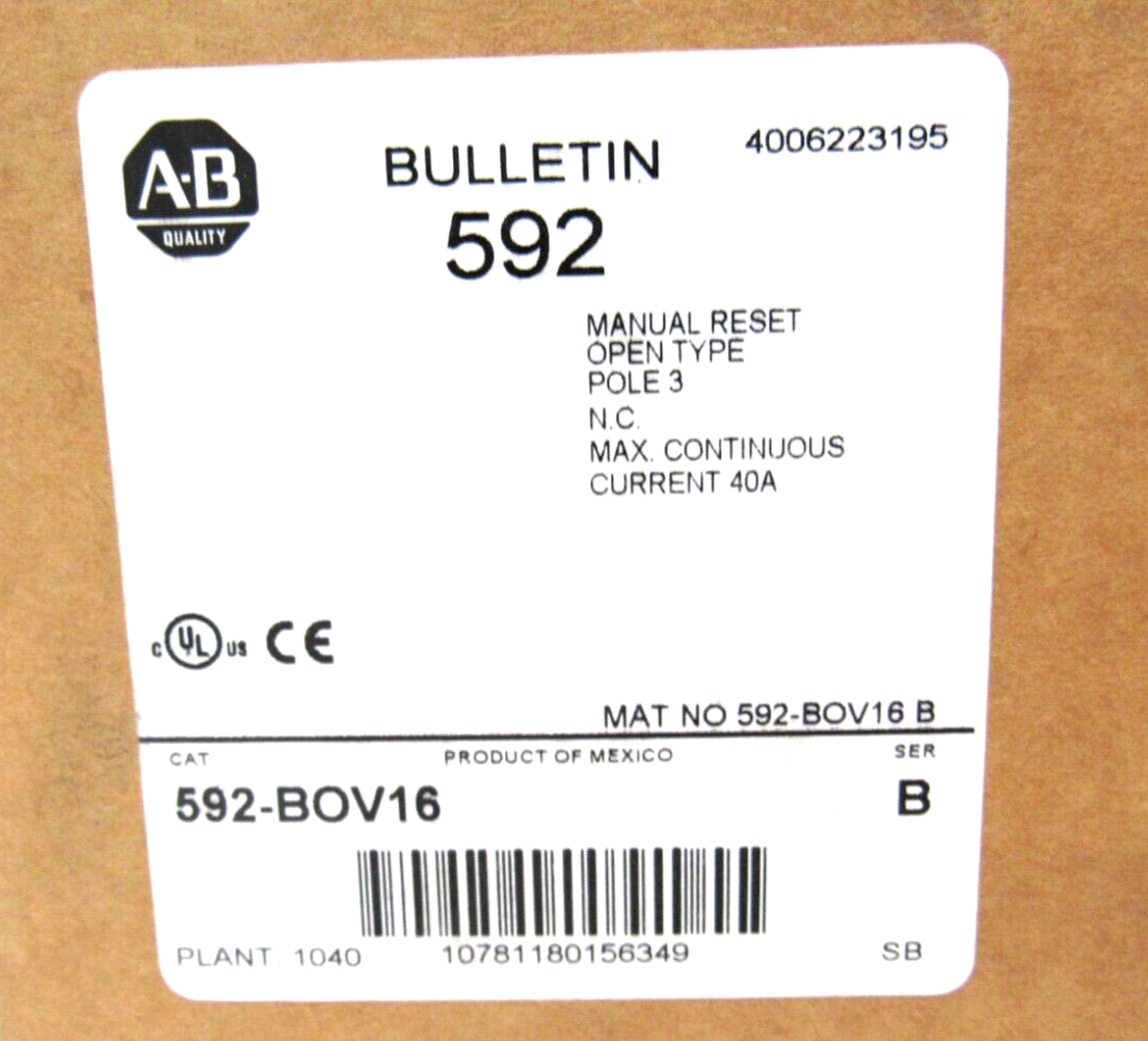 NEW ALLEN BRADLEY 592-BOV16 OVERLOAD RELAY SER.B 592BOV16