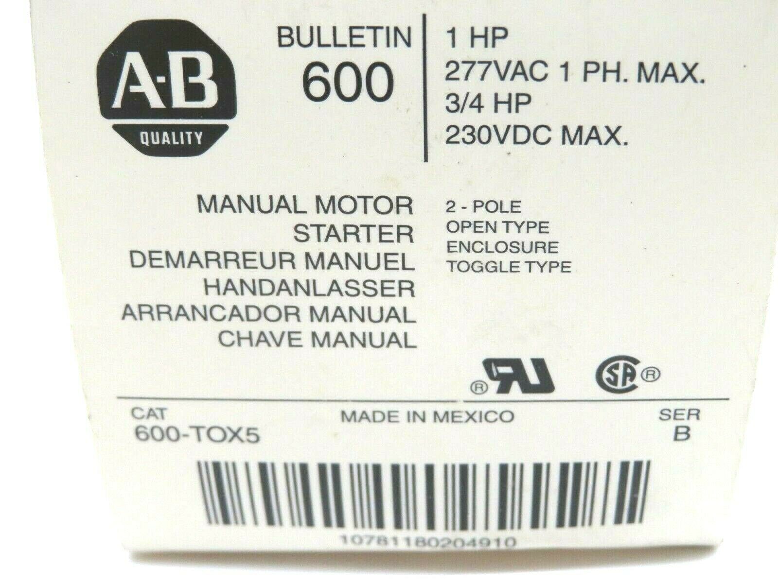 NEW ALLEN BRADLEY 600-TOX5 MANUAL MOTOR STARTER 600TOX5