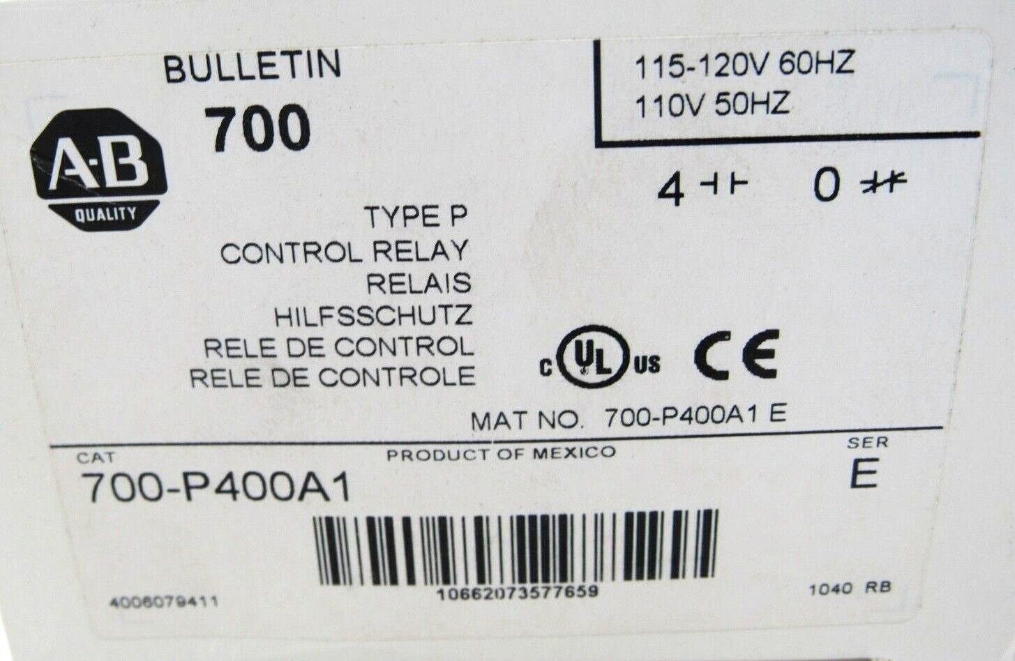 NEW ALLEN BRADLEY 700-P400A1 CONTROL RELAY SERIES E 700P400A1
