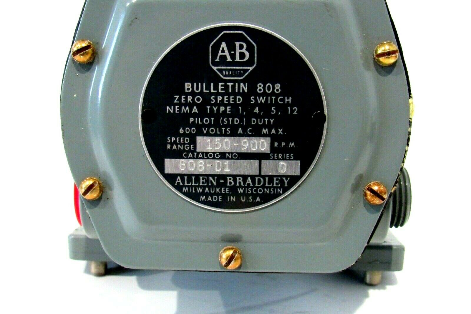 NEW ALLEN BRADLEY 808-D1 ZERO SPEED SWITCH SER.D 808D1