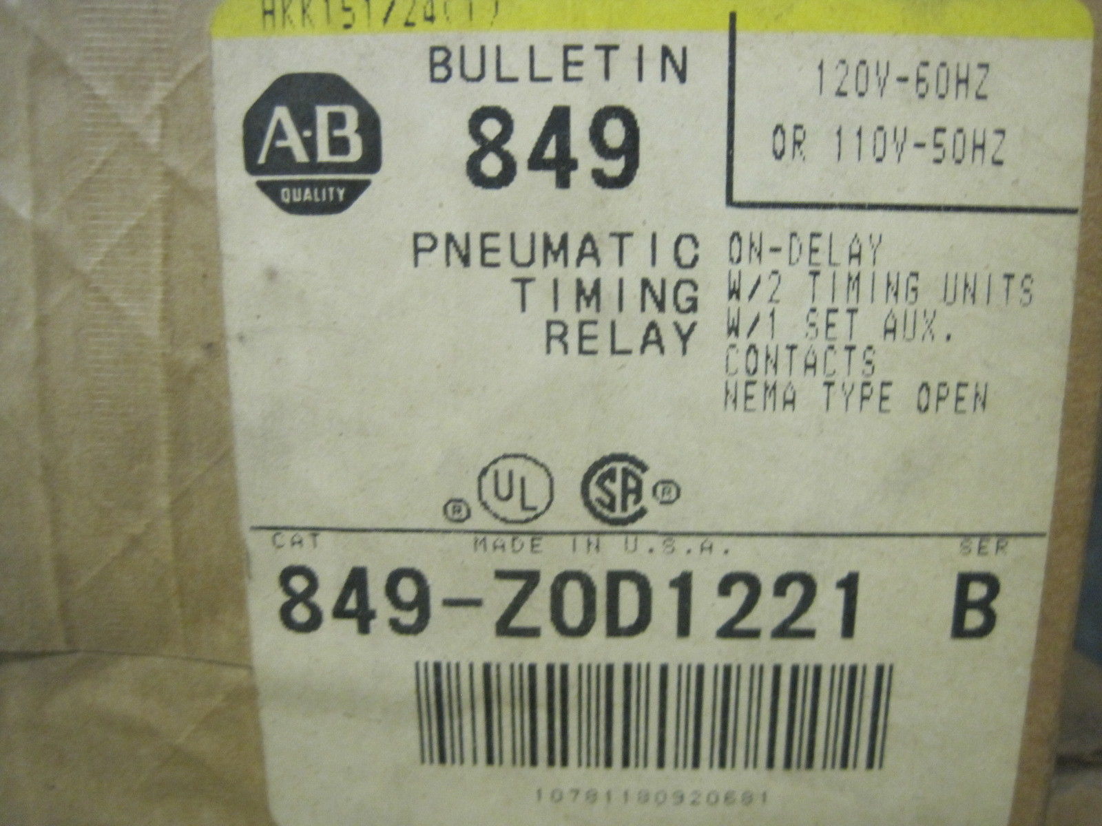 New Allen Bradley 849-ZOD1221 Pneumatic Timer 849ZOD1221$380.00 Out of stock SKU: 171013683723 Categories: Other, Timers Description Additional information Description New Allen Bradley 849-ZOD1221 Pneumatic Timer 849ZOD1221 New, open box 11-492 rb Additional information Weight 1 lbs We Buy New and Used Surplus Inventory - Sell to Us