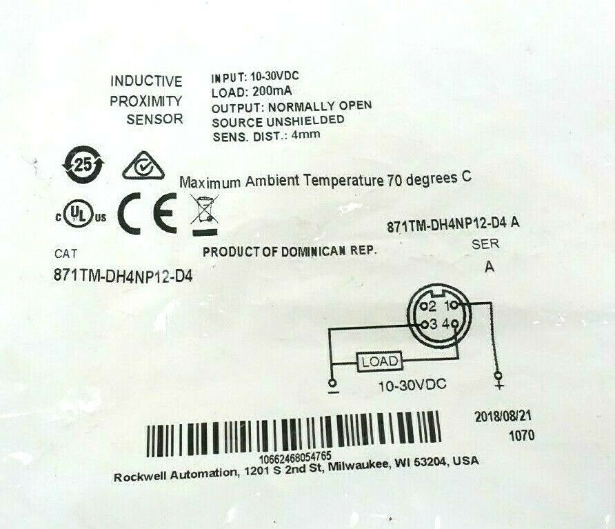 NEW ALLEN BRADLEY 871TM-DH4NP12-D4 INDUCTIVE PROXIMITY SENSOR 871TMDH4NP12D4 - Image 4