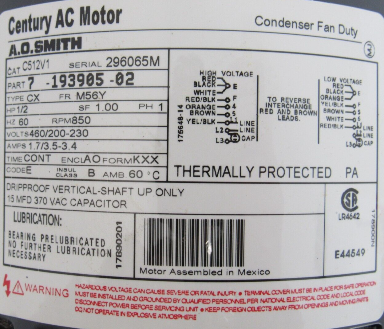 NEW AO SMITH C512V1 CONDENSER MOTOR 460V/200-230 4MA25 850RPM 1/2HP$300.00 Only 1 left in stock NEW AO SMITH C512V1 CONDENSER MOTOR 460V/200-230 4MA25 850RPM 1/2HP quantity Add to cart SKU: 354560464691 Category: Other Description Additional information Description NEW AO SMITH C512V1 CONDENSER MOTOR 460V/200-230 4MA25 850RPM 1/2HP B2/25 BB Additional information Weight 32.00 lbs Brand AO SMITH MPN C512V1 Country/Region of Manufacture Mexico We Buy New and Used Surplus Inventory - Sell to Us