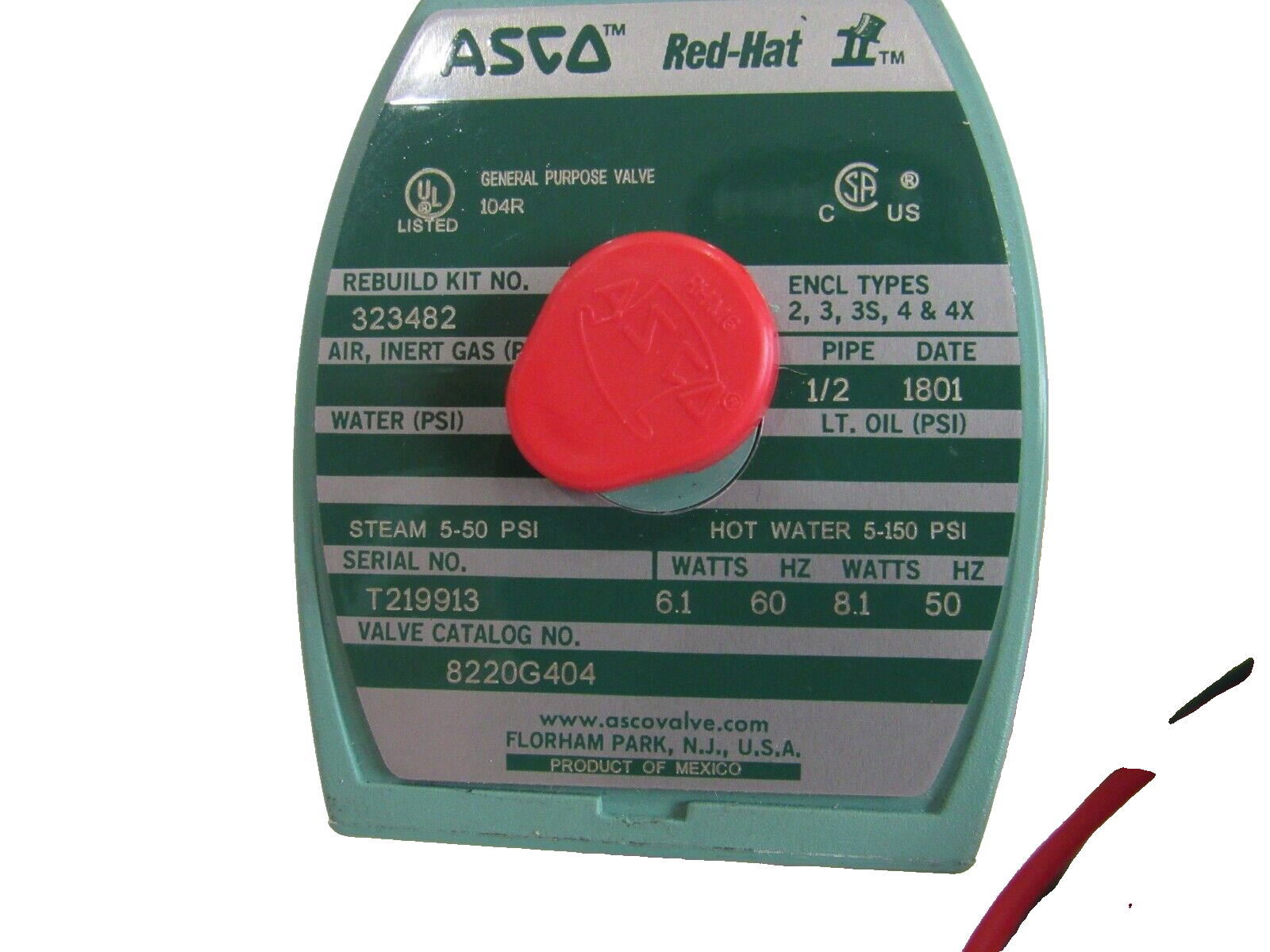 NEW ASCO 8220G404 SOLENOID VALVE 120/60 110/50$175.00 Out of stock SKU: 176550178520 Category: Other Description Additional information Description NEW ASCO 8220G404 SOLENOID VALVE 120/60 110/50 NEW, NO BOX 1556/BF Additional information Weight 2.00 lbs Brand ASCO MPN 8220G404 Country/Region of Manufacture Mexico We Buy New and Used Surplus Inventory - Sell to Us