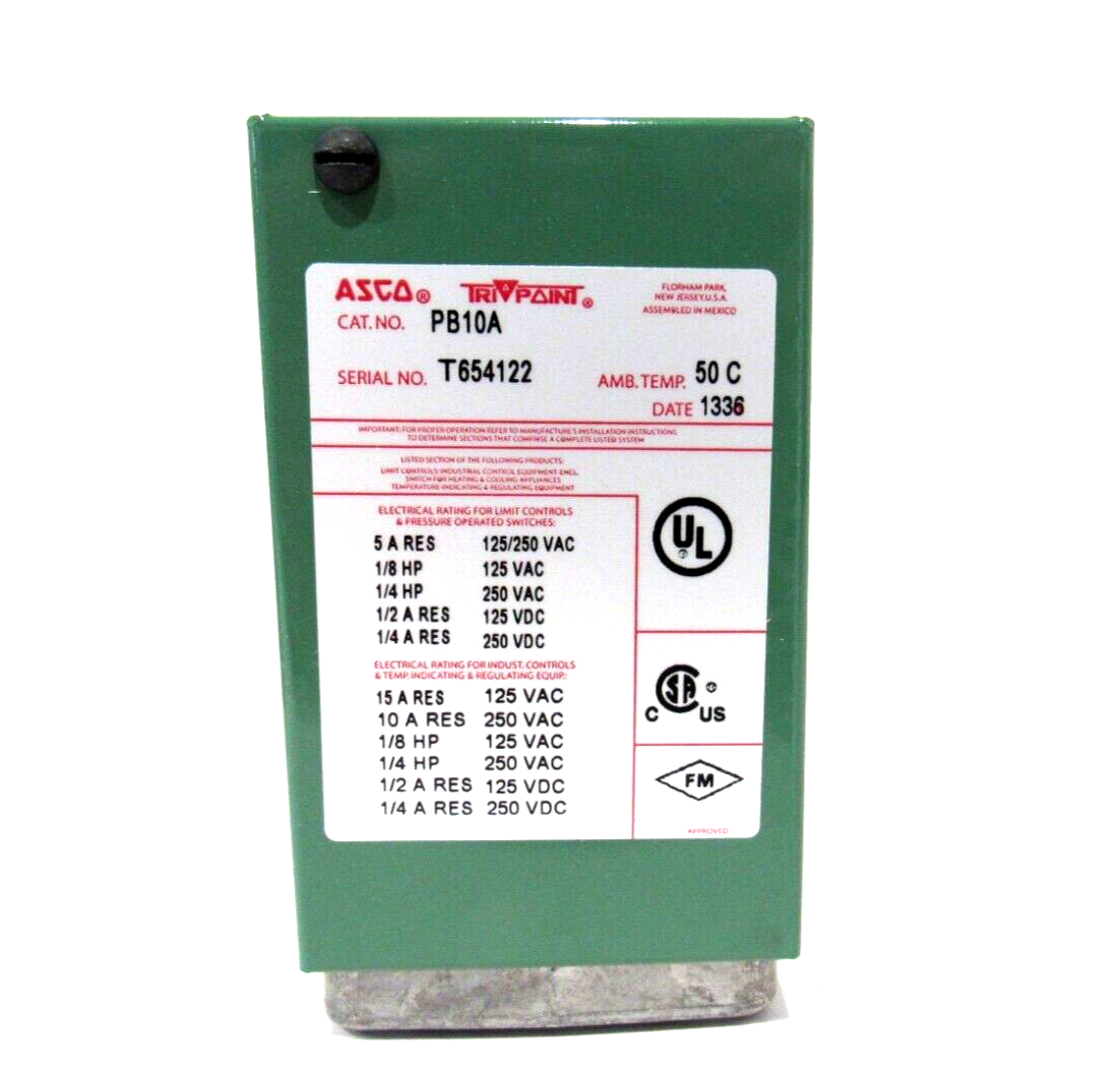 NEW ASCO PB10A PRESSURE SWITCH W/ RF10A11$400.00 Out of stock SKU: 195496668561 Category: Other Description Additional information Description NEW ASCO PB10A PRESSURE SWITCH W/ RF10A11 1396 RB Additional information Weight 1.94 lbs Brand ASCO Model N/A Fuse Type Switch MPN PB10A Country/Region of Manufacture Mexico We Buy New and Used Surplus Inventory - Sell to Us