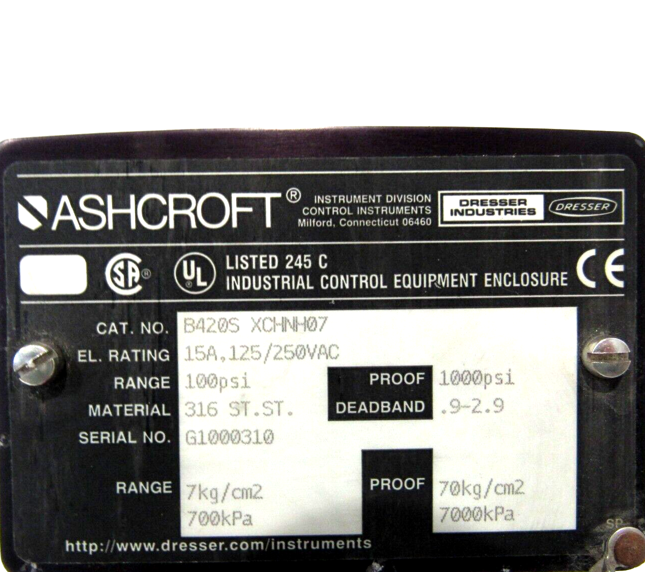 NEW ASHCROFT B420SXCHNH07 PRESSURE SWITCH