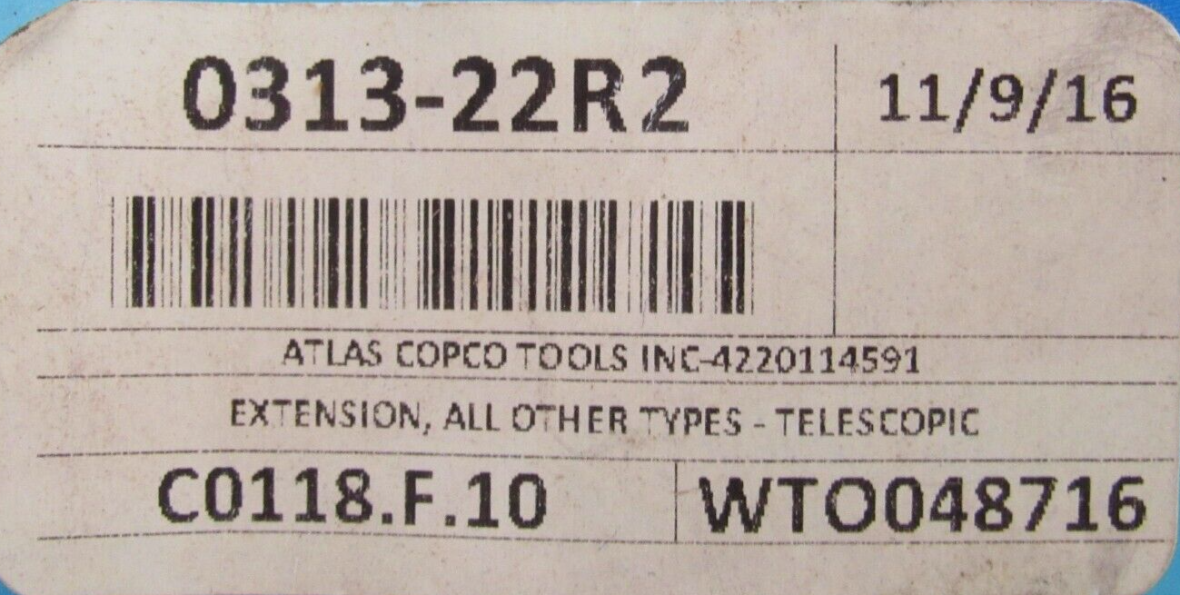 NEW ATLAS COPCO 0313-22R2 EXTENSION C0118.F.10 WTO048716 4220114591 3/8"-T50