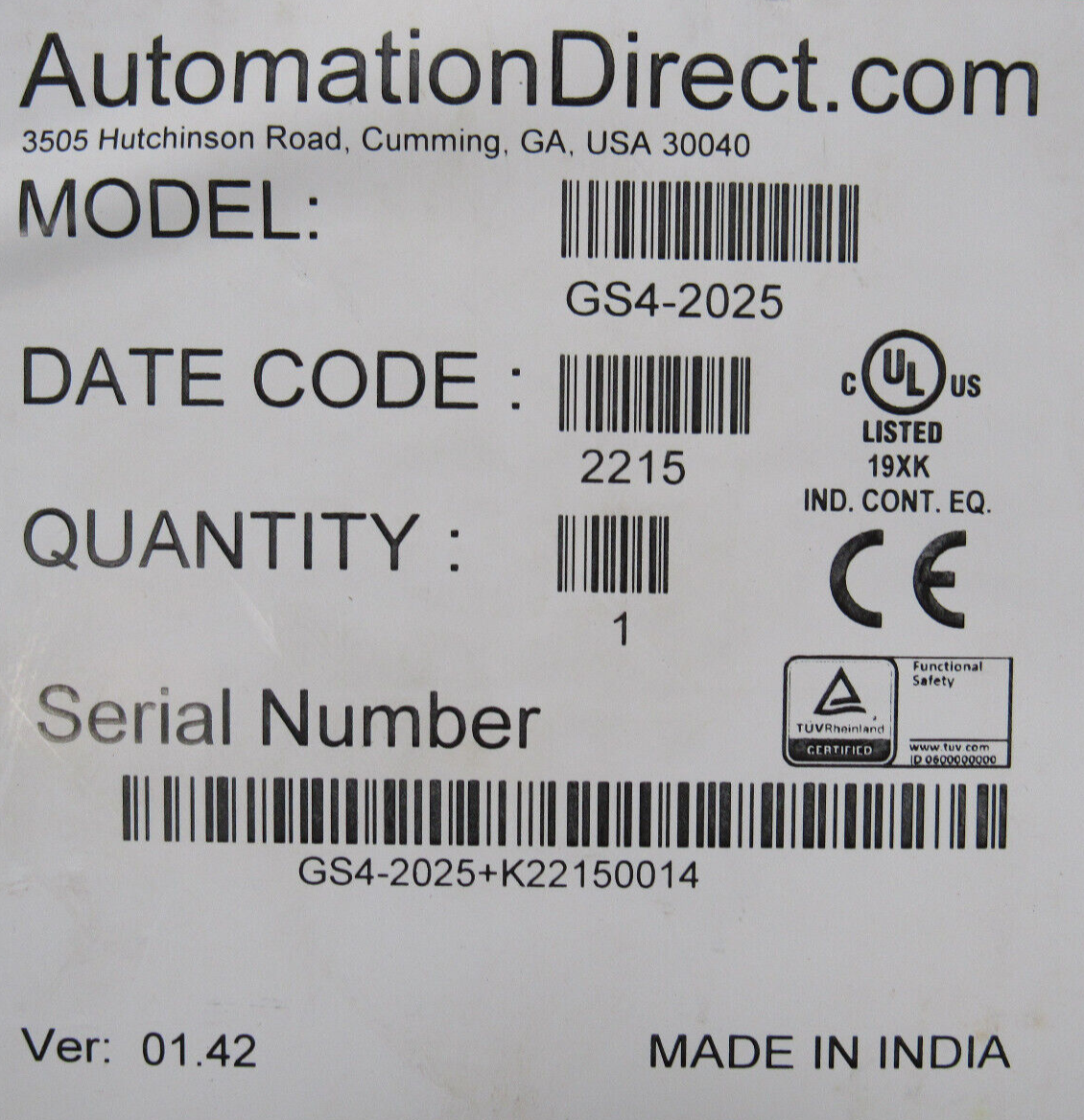 NEW AUTOMATION DIRECT GS4-2025 DRIVE 25HP GS42025