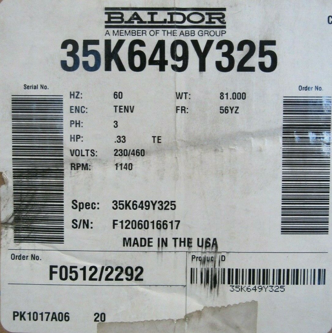 NEW BALDOR 35K649Y325 KASON MOTOR .33HP 1140 RPM 56YZ
