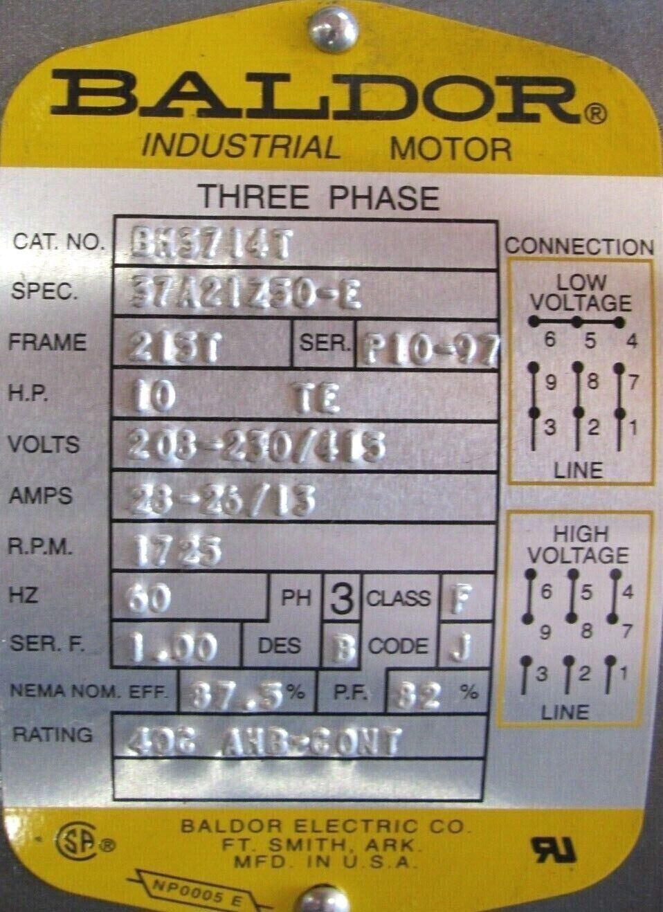 NEW BALDOR BM3714T BRAKE MOTOR 10HP 208-230/415V 213T 1-3/8" DIA. 1725RPM