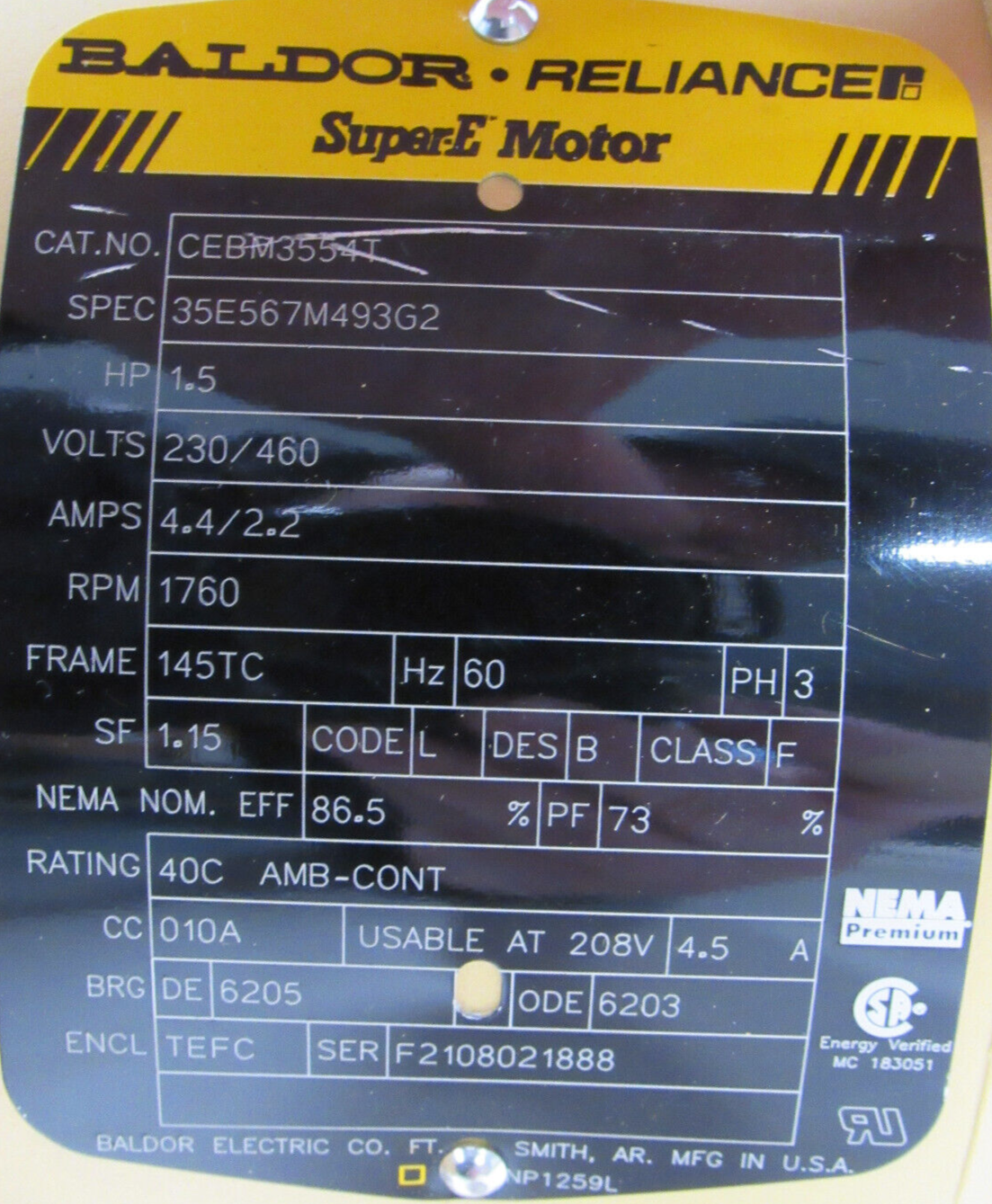 NEW BALDOR CEBM3554T BRAKE MOTOR 1.5HP 230/460V 1760RPM 145TC