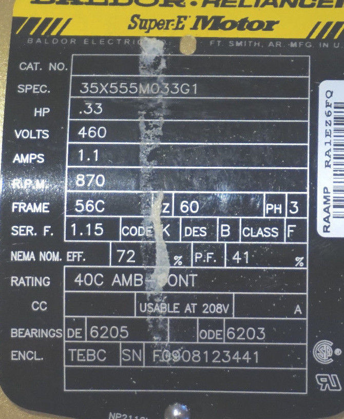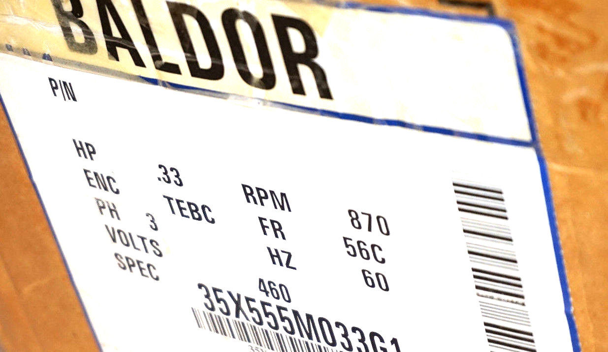 NEW BALDOR RELIANCE 35X555M033G1 SUPER-E MOTOR, .33HP, 870RPM